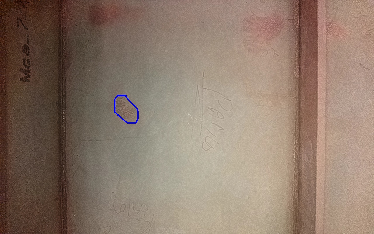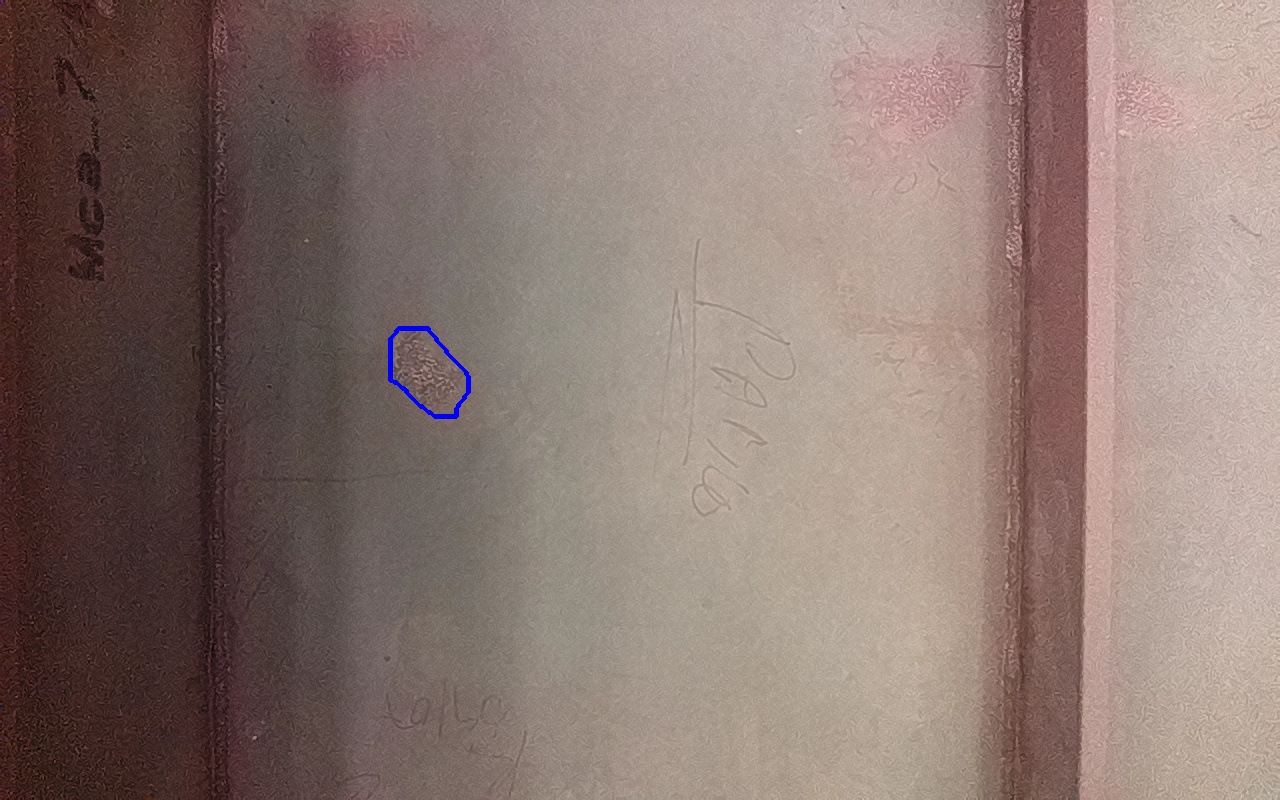 Rayaduras o zonas de metal expuestas con productos de óxido débilmente adherido.