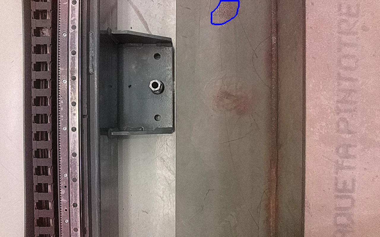 Residuos metálicos adheridos a la superficie, provenientes de operaciones adyacentes de fabricación y montaje. |