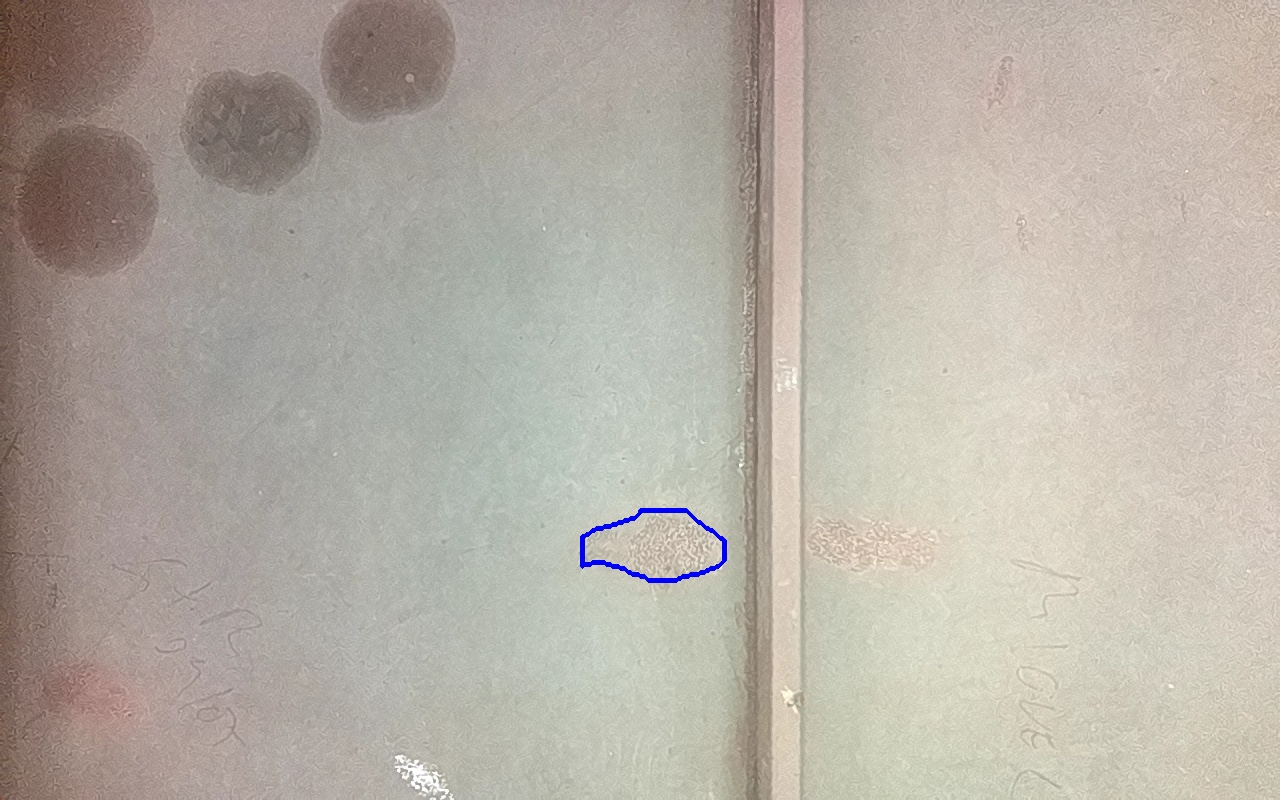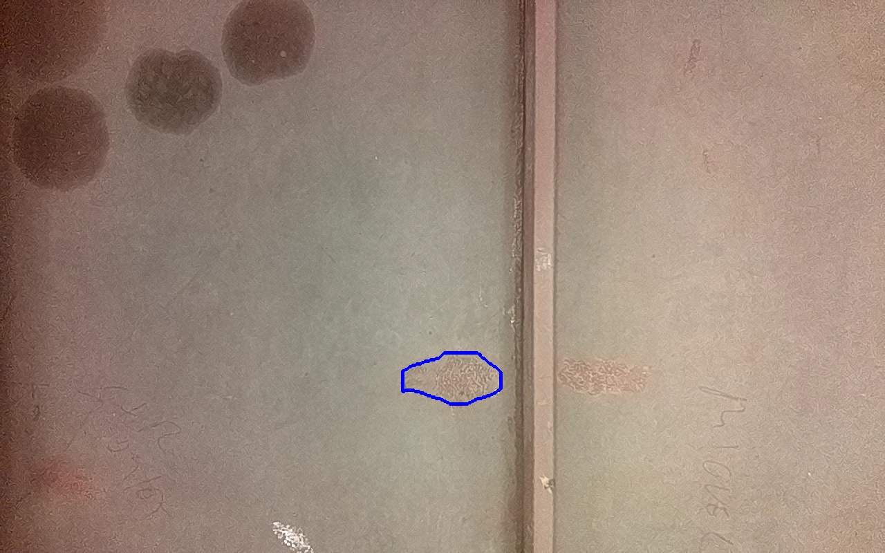 Rayaduras o zonas de metal expuestas con productos de óxido débilmente adherido.
