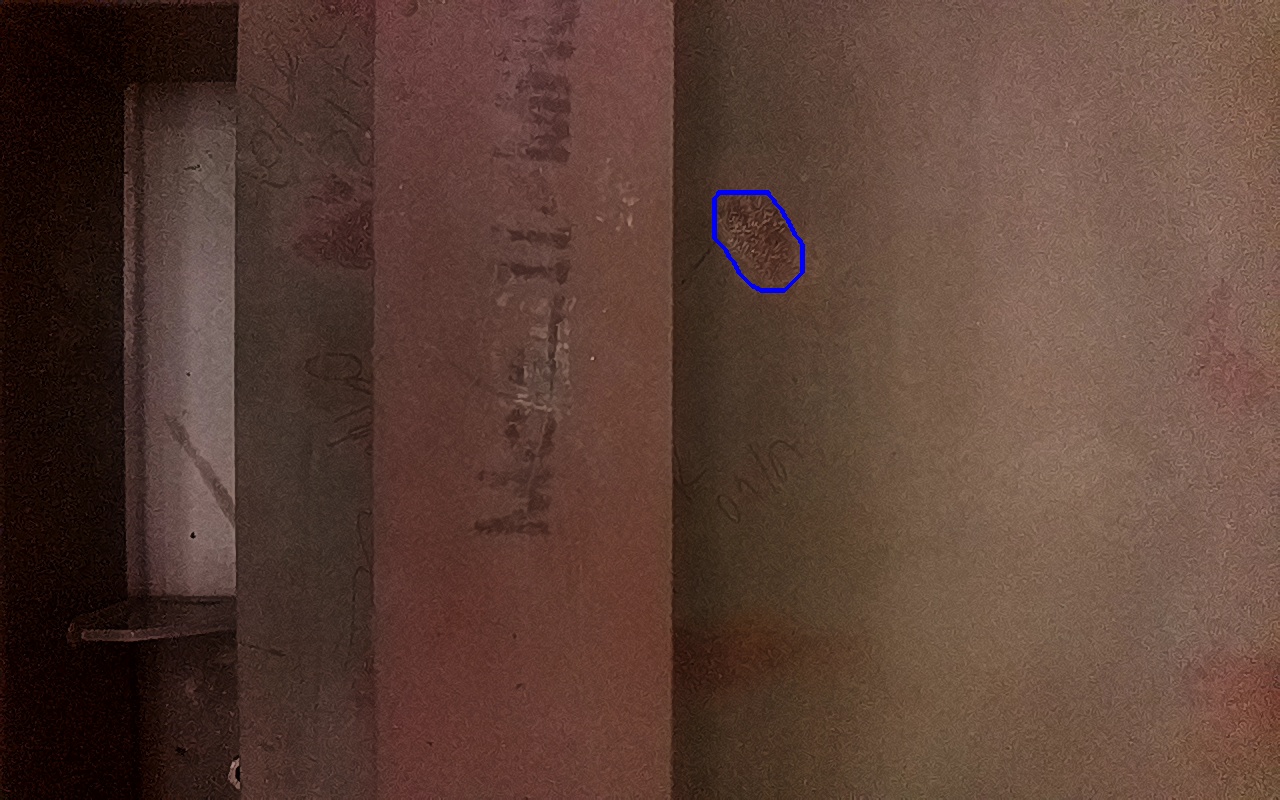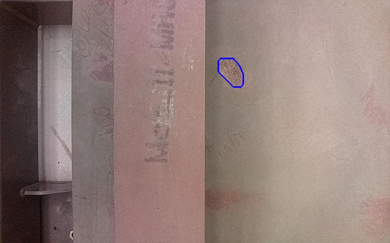 Rayaduras o zonas de metal expuestas con productos de óxido débilmente adherido.