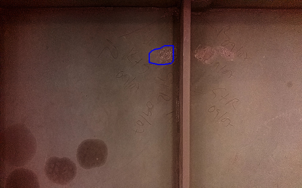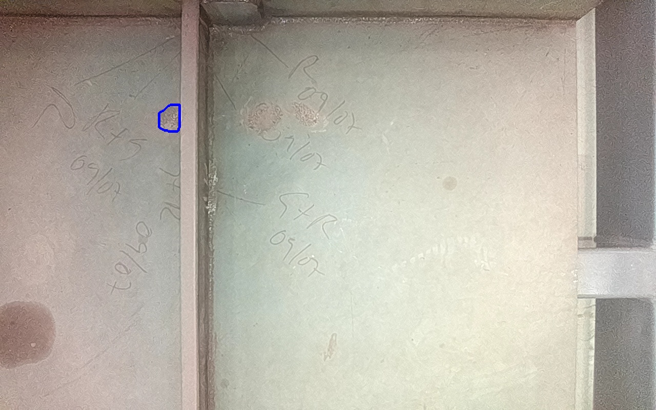 Residuos metálicos adheridos a la superficie, provenientes de operaciones adyacentes de fabricación y montaje. |