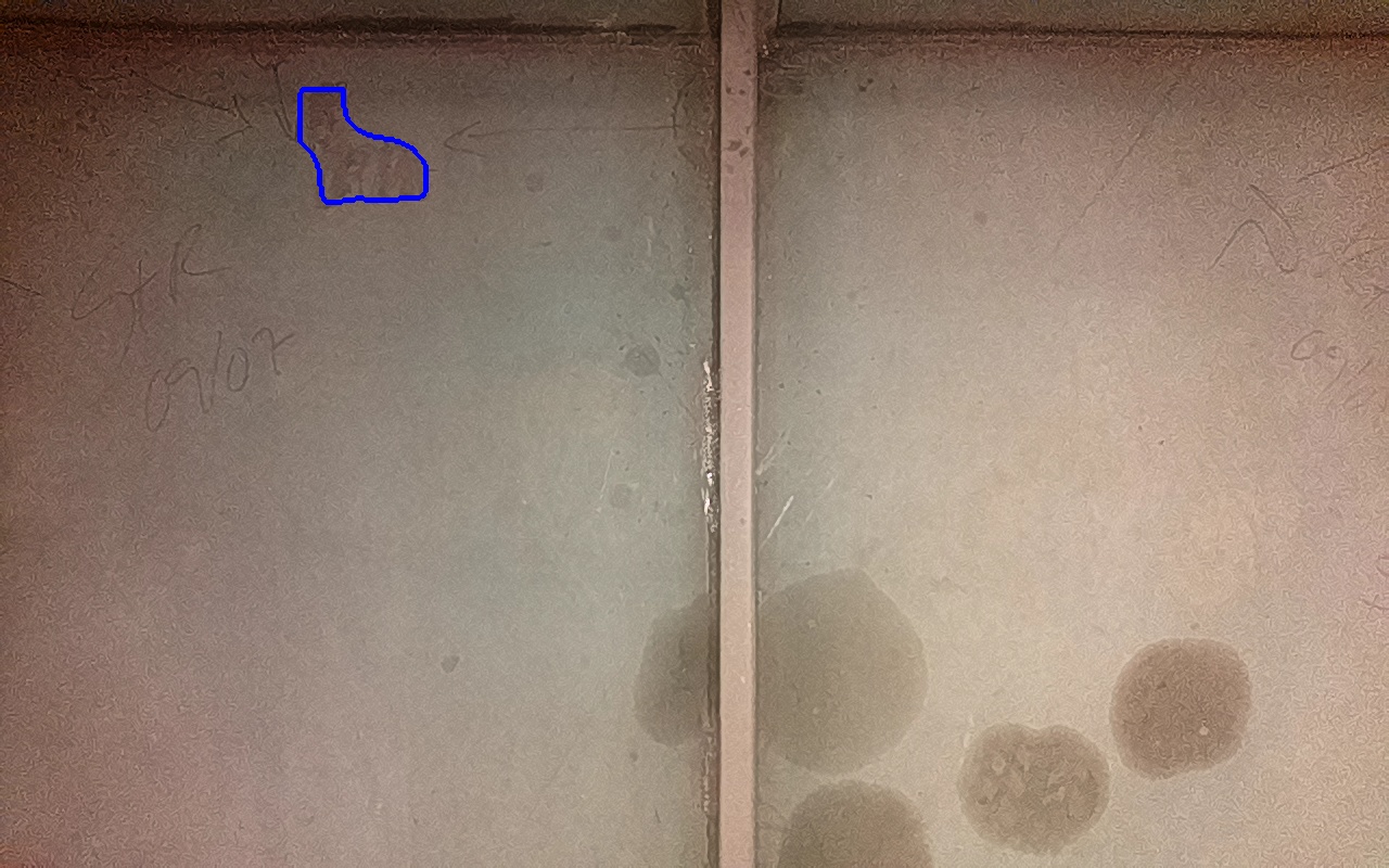Residuos metálicos adheridos a la superficie, provenientes de operaciones adyacentes de fabricación y montaje. |