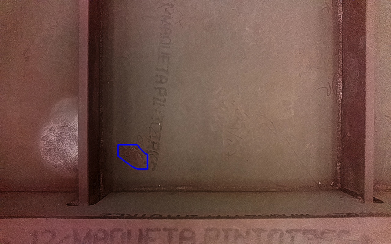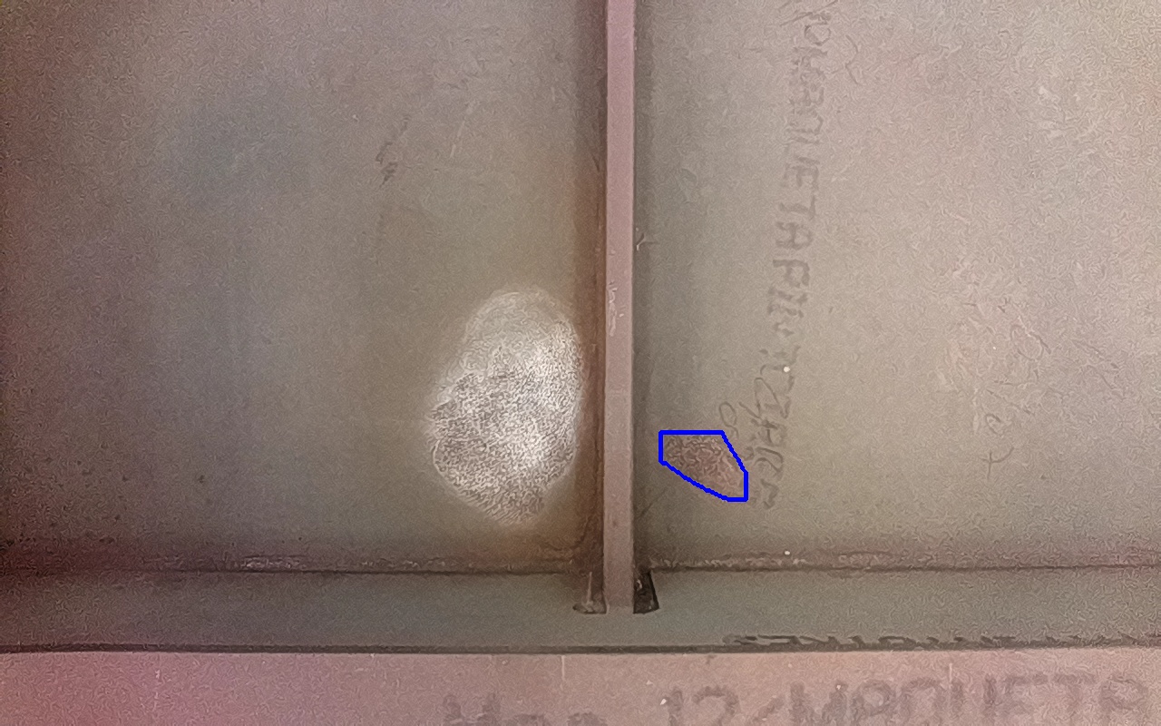 Rayaduras o zonas de metal expuestas con productos de óxido débilmente adherido.
