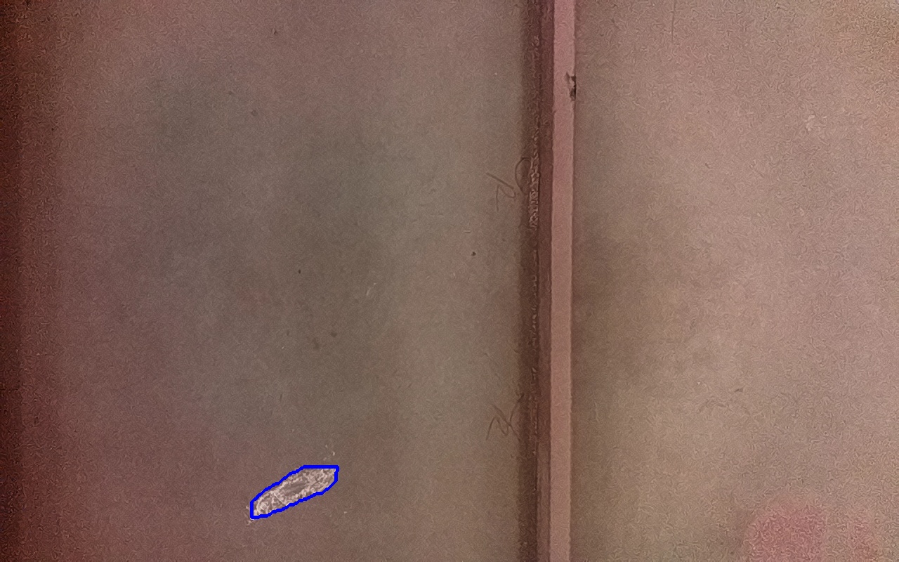 Rayaduras o zonas de metal expuestas con productos de óxido débilmente adherido.