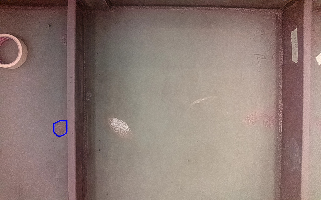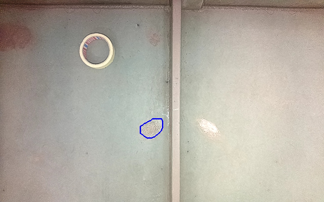 Rayaduras o zonas de metal expuestas con productos de óxido débilmente adherido.