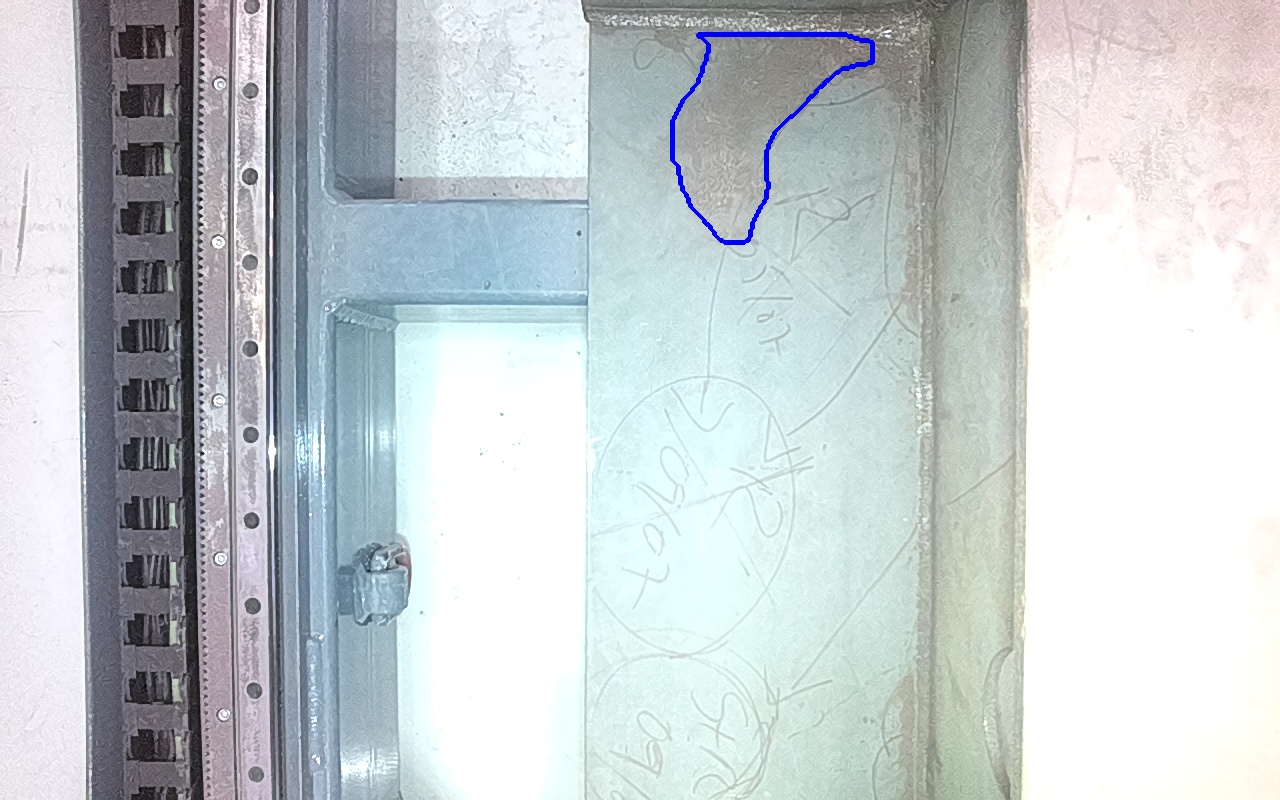 Rayaduras o zonas de metal expuestas con productos de óxido débilmente adherido.