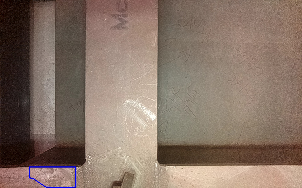 Rayaduras o zonas de metal expuestas con productos de óxido débilmente adherido.