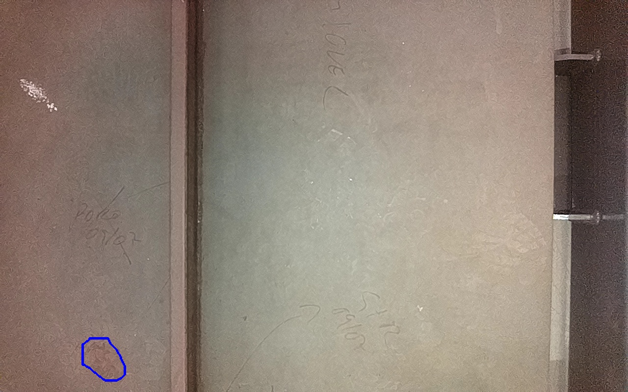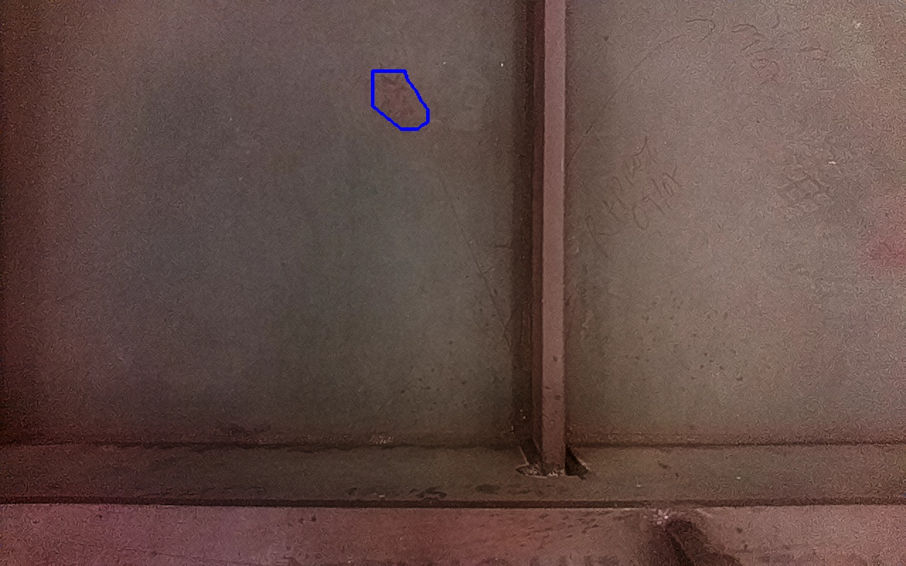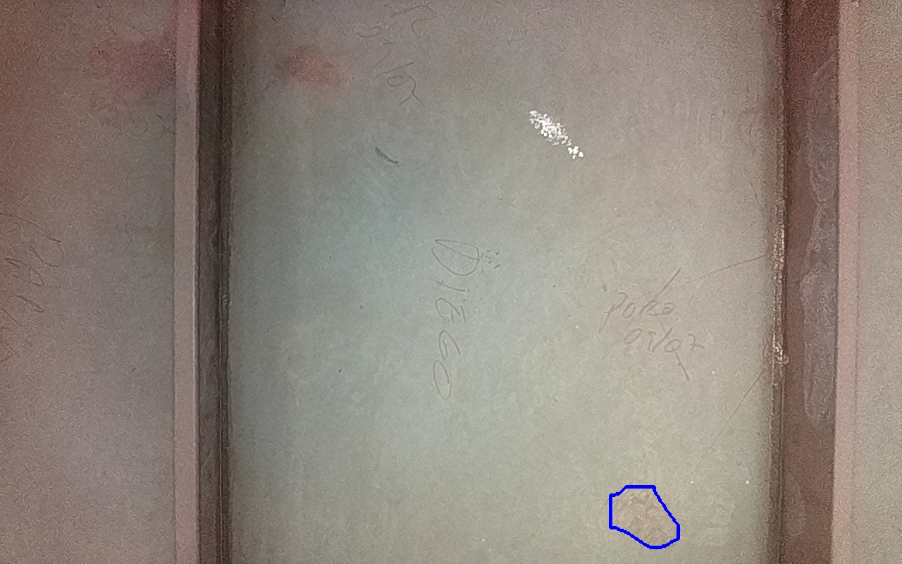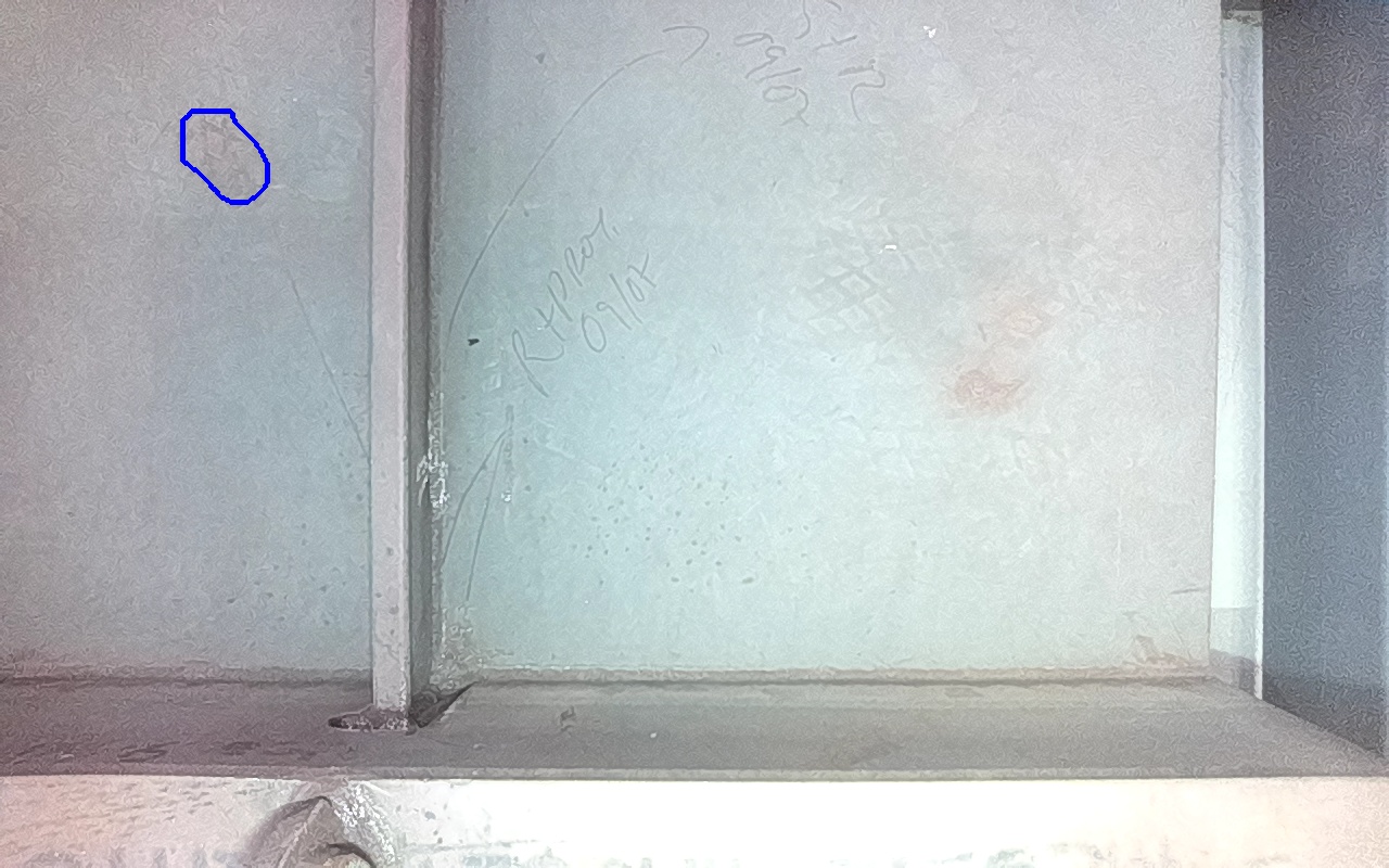 Rayaduras o zonas de metal expuestas con productos de óxido débilmente adherido.