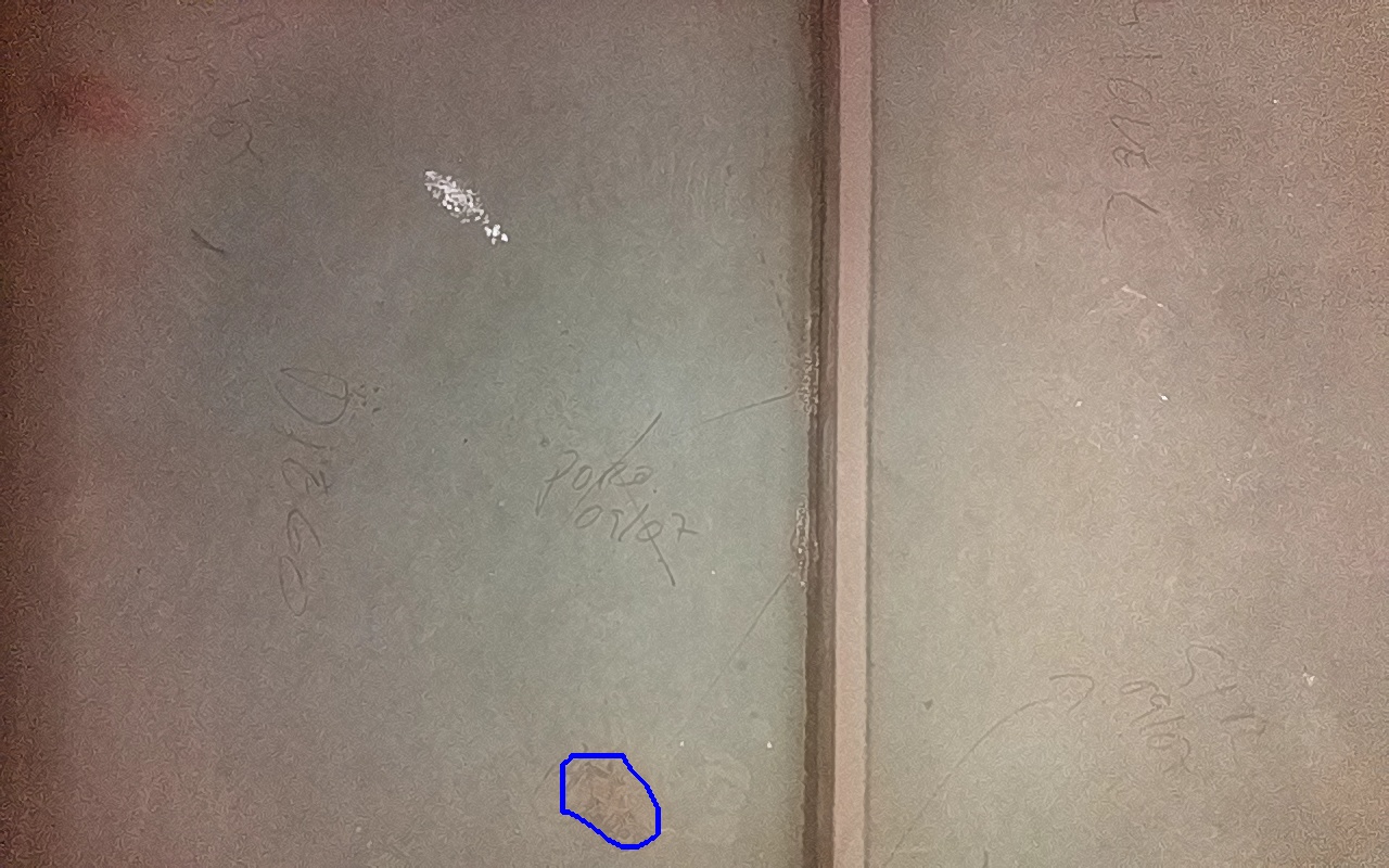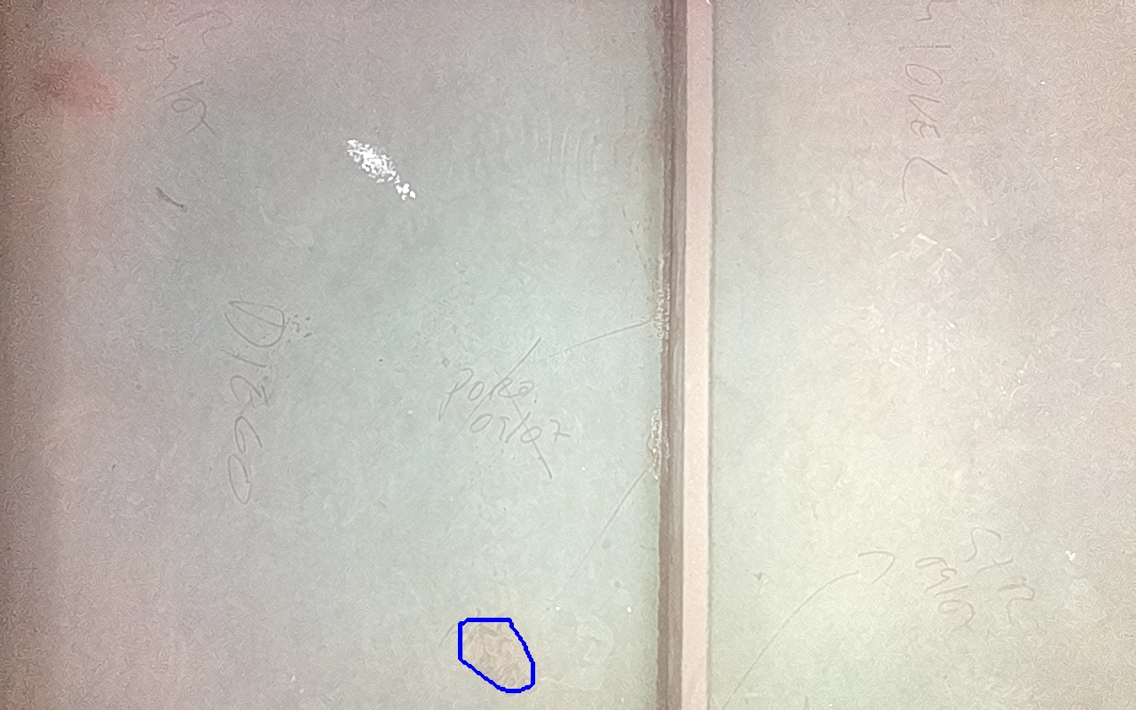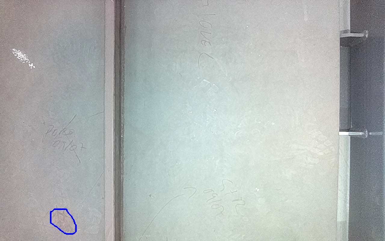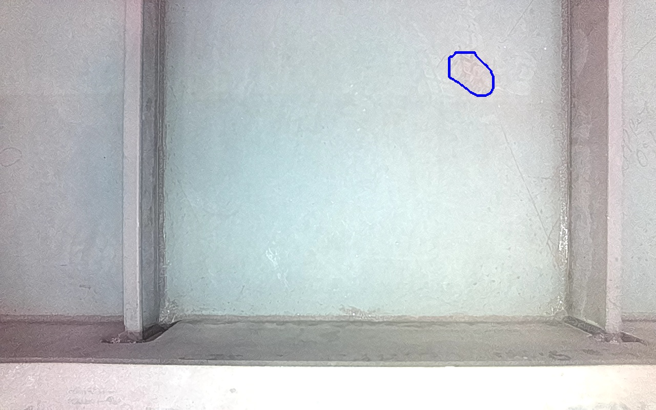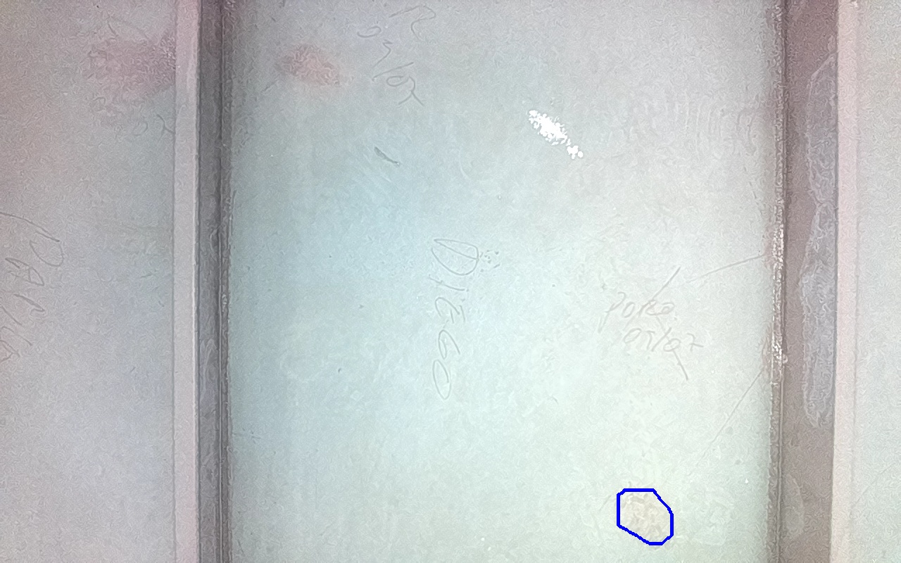Rayaduras o zonas de metal expuestas con productos de óxido débilmente adherido.