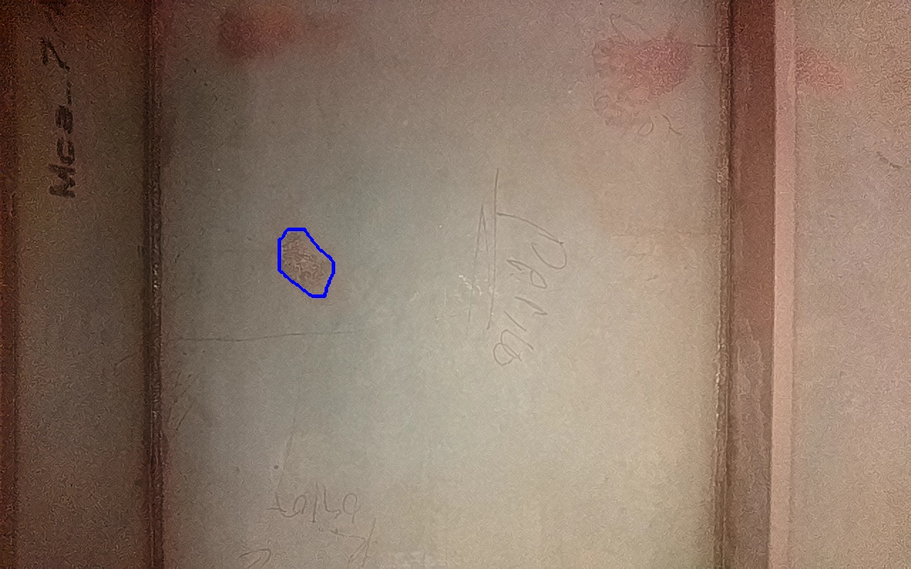 Rayaduras o zonas de metal expuestas con productos de óxido débilmente adherido.