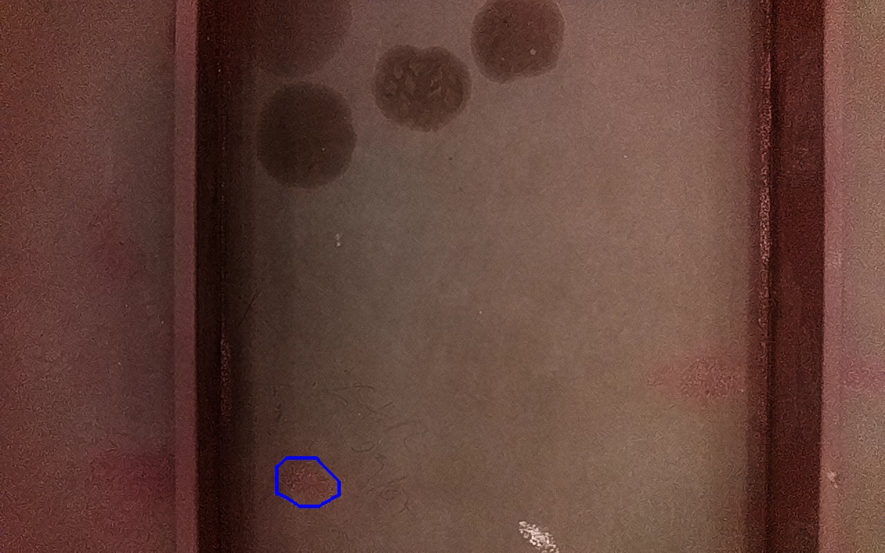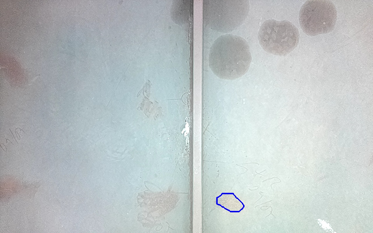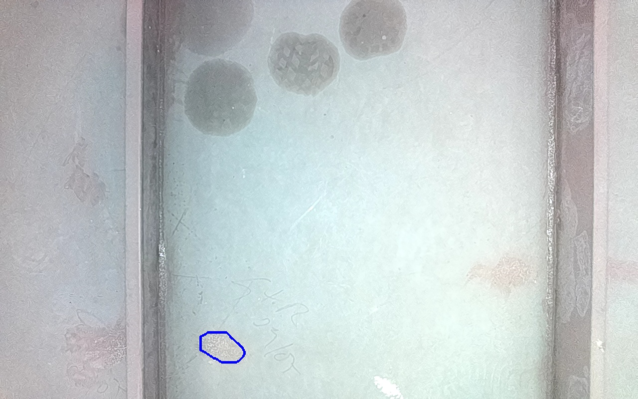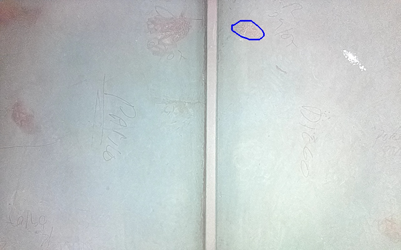 Rayaduras o zonas de metal expuestas con productos de óxido débilmente adherido.