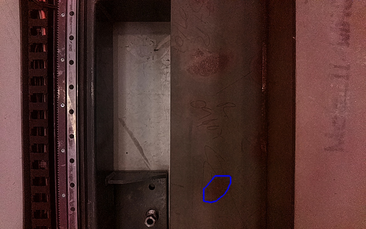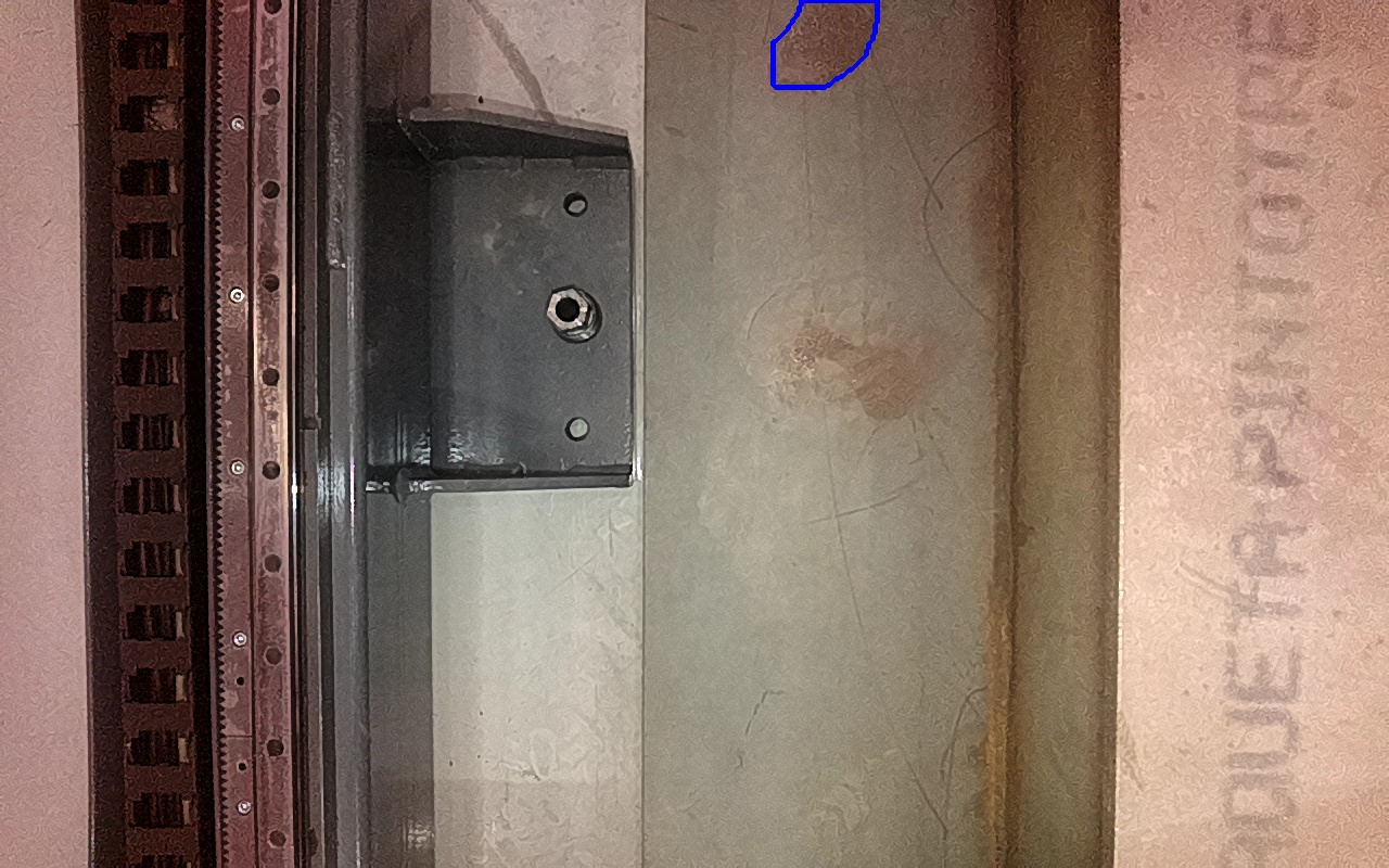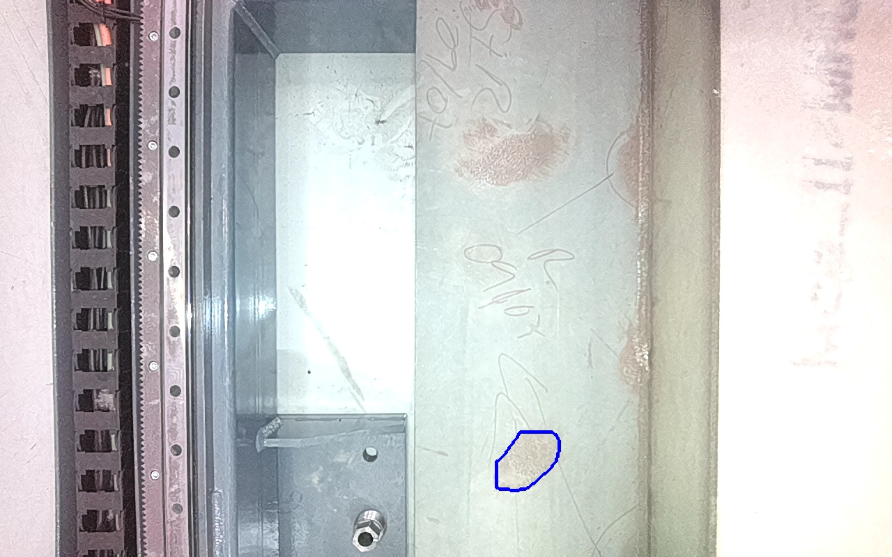 Rayaduras o zonas de metal expuestas con productos de óxido débilmente adherido.