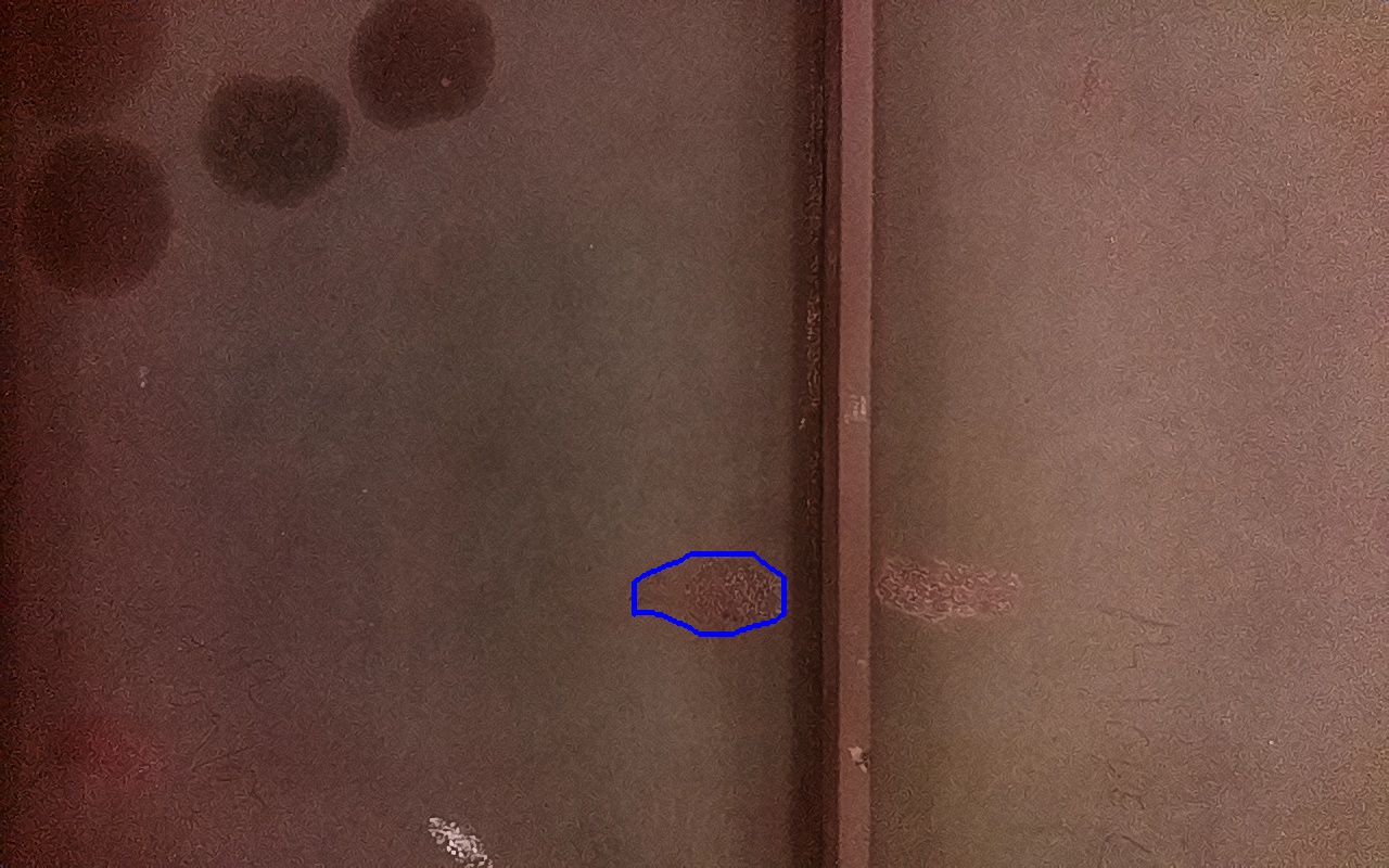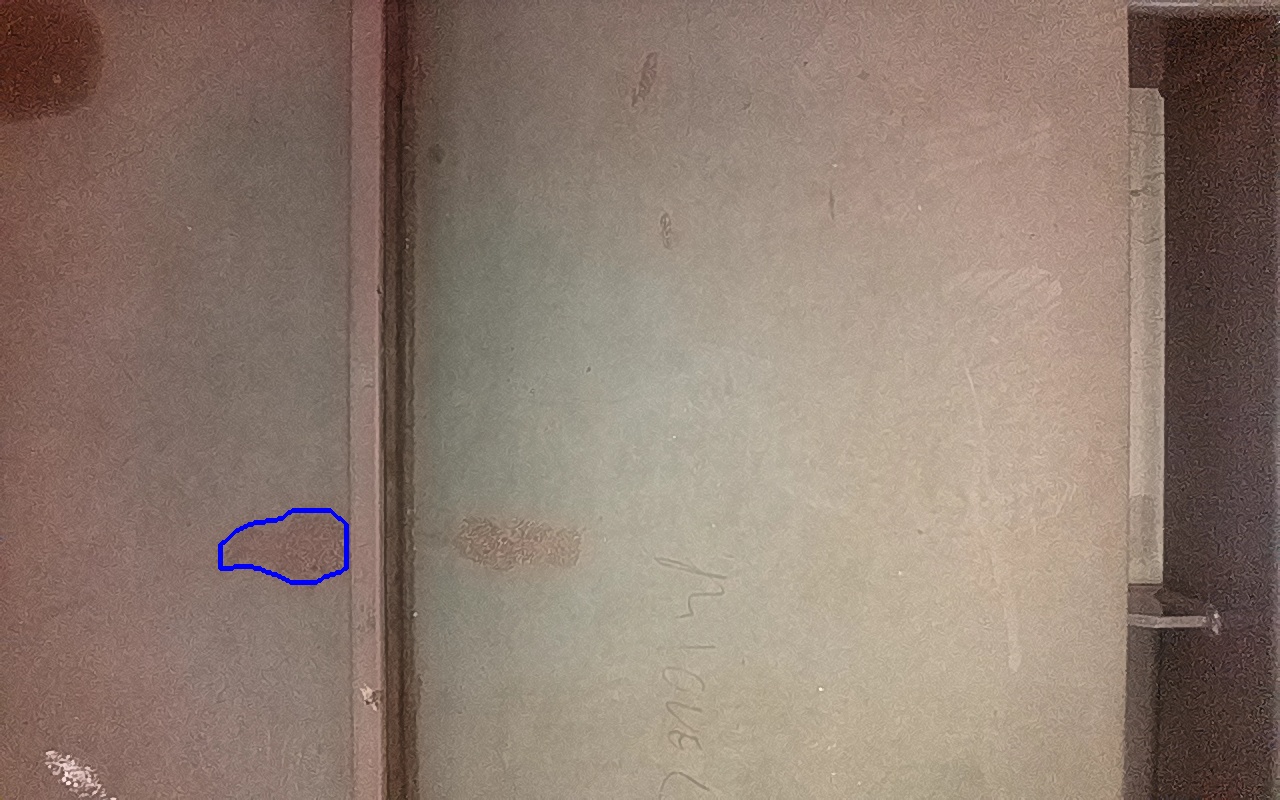 Rayaduras o zonas de metal expuestas con productos de óxido débilmente adherido.