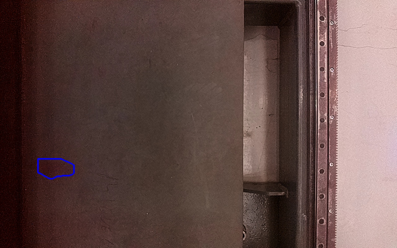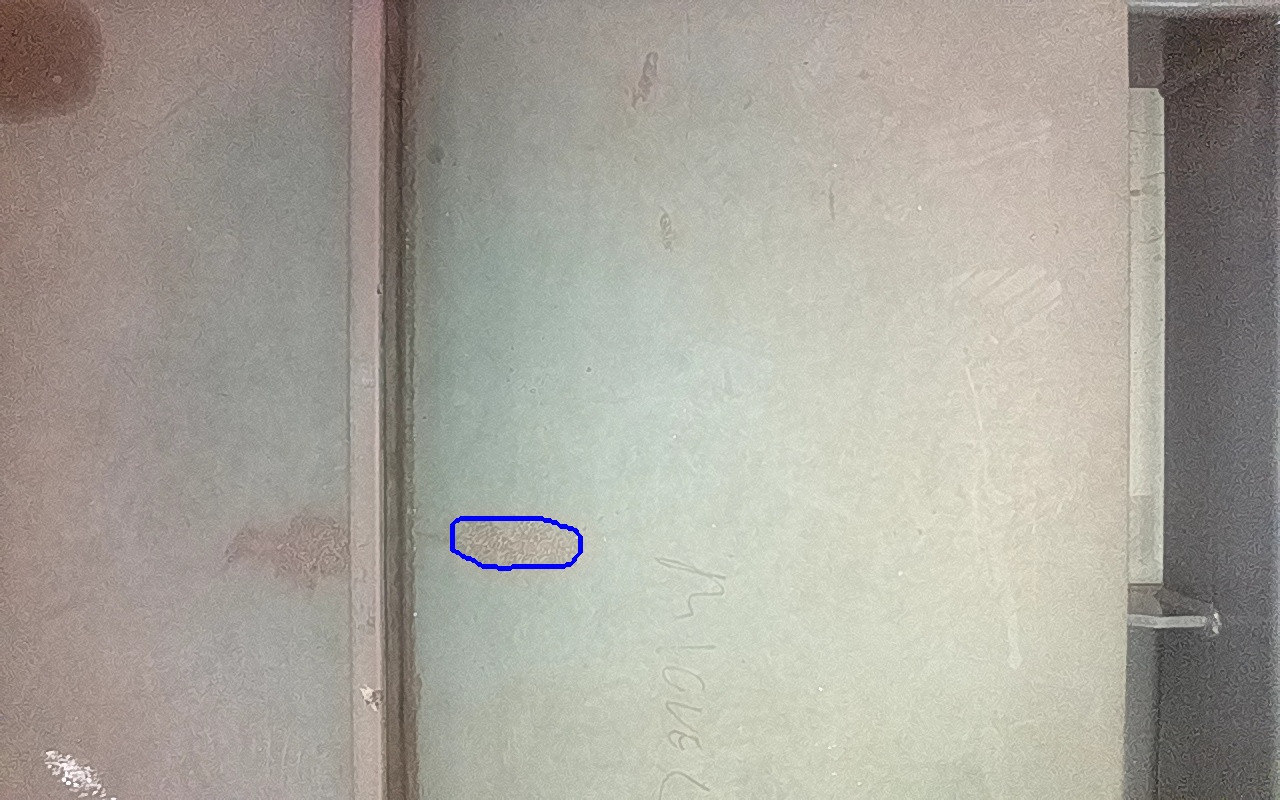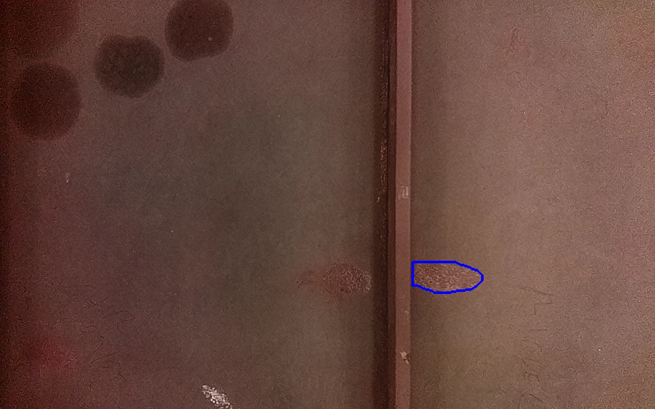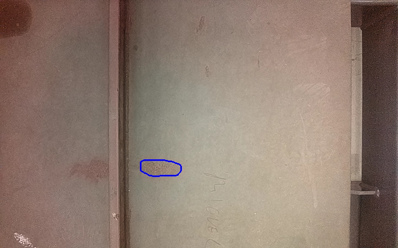 Rayaduras o zonas de metal expuestas con productos de óxido débilmente adherido.
