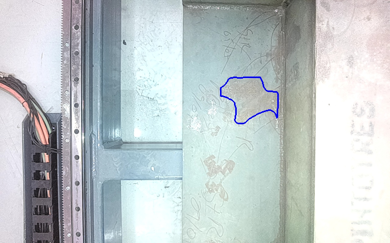 Rayaduras o zonas de metal expuestas con productos de óxido débilmente adherido.