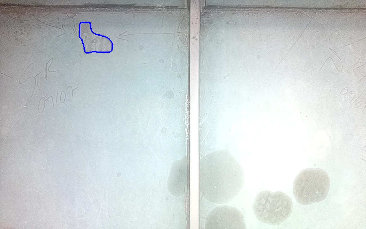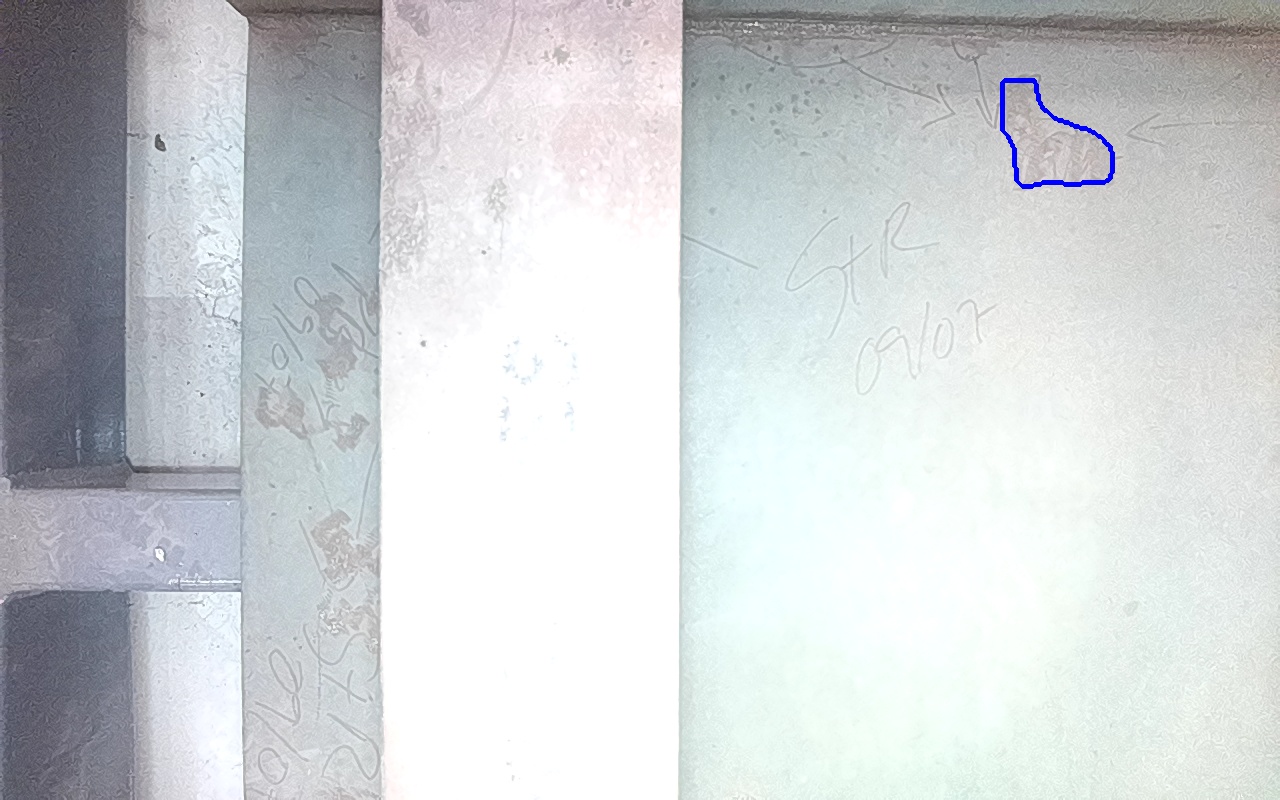 Rayaduras o zonas de metal expuestas con productos de óxido débilmente adherido.