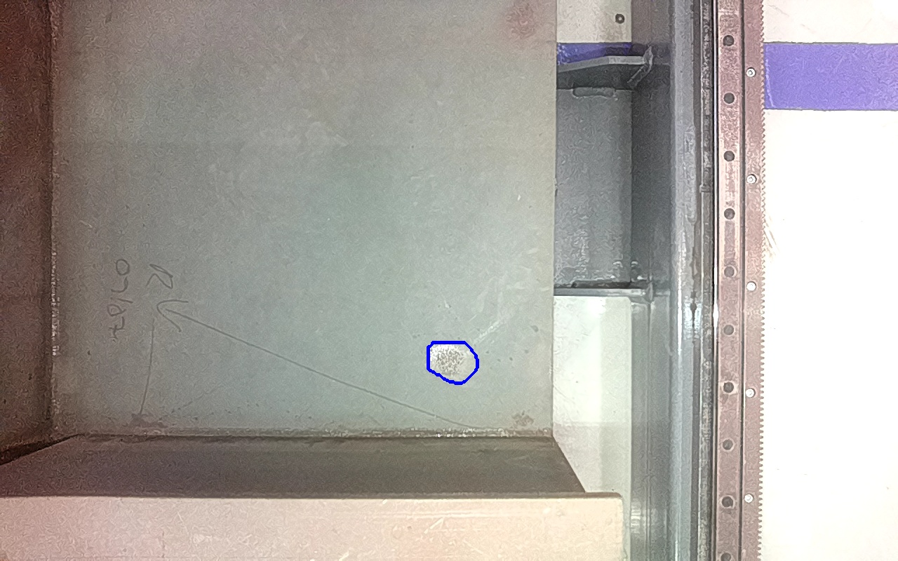 Rayaduras o zonas de metal expuestas con productos de óxido débilmente adherido.