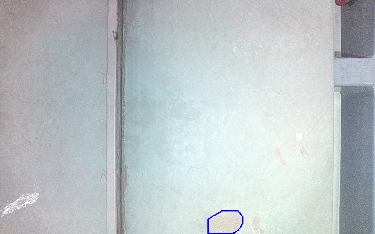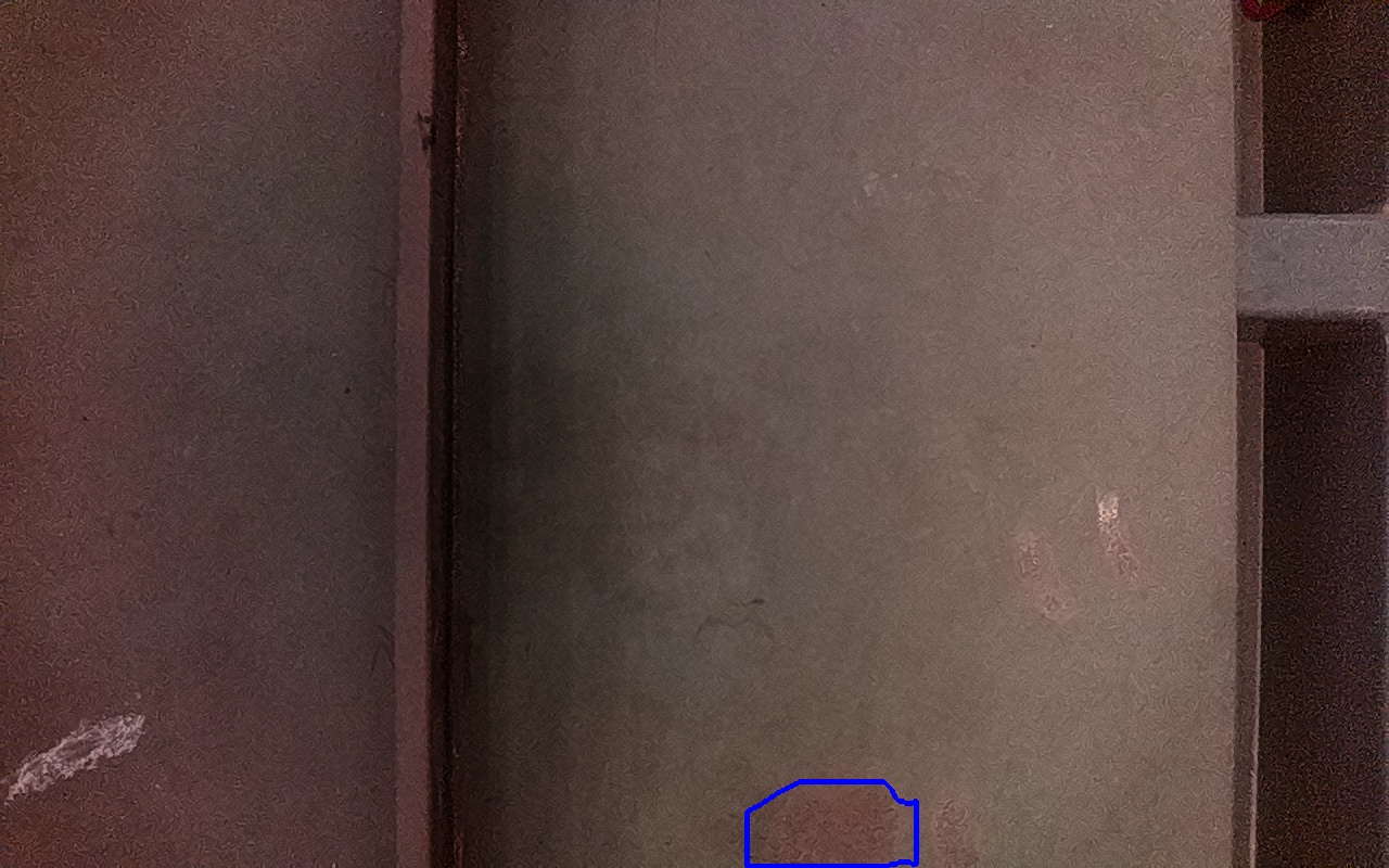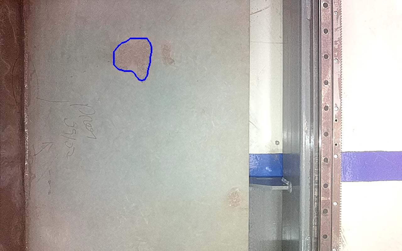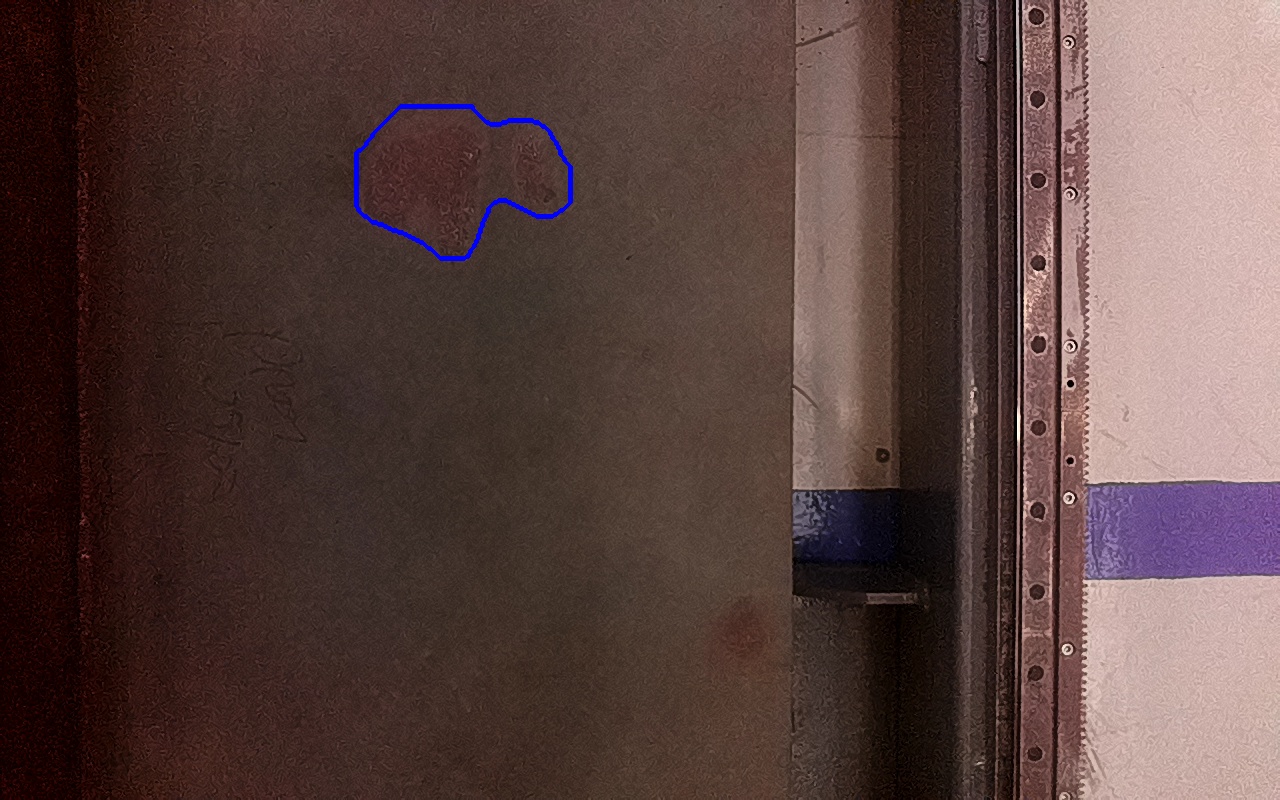 Rayaduras o zonas de metal expuestas con productos de óxido débilmente adherido.