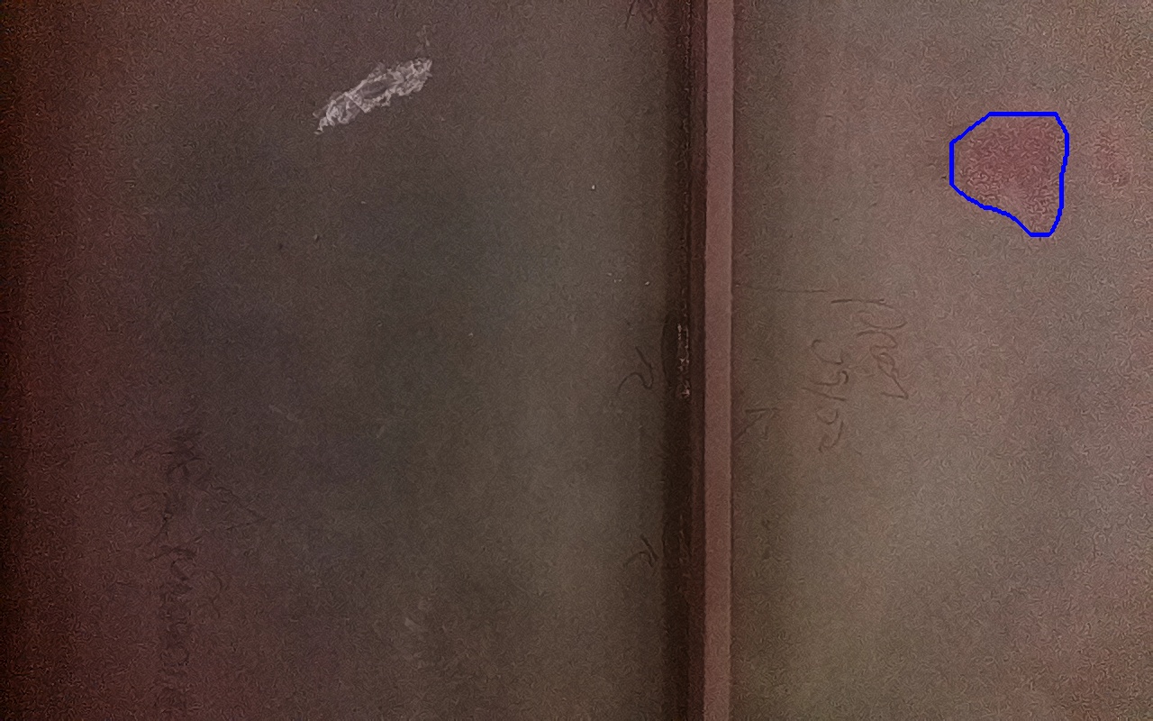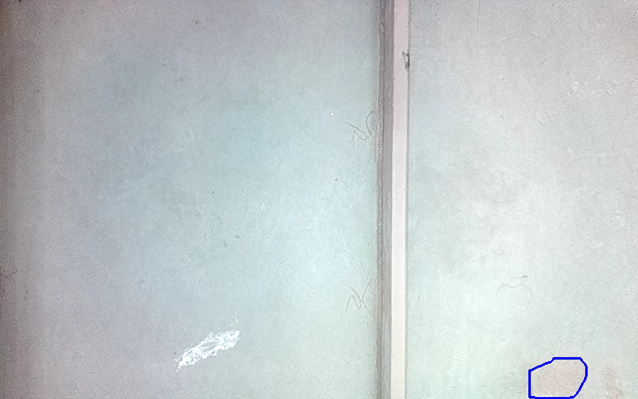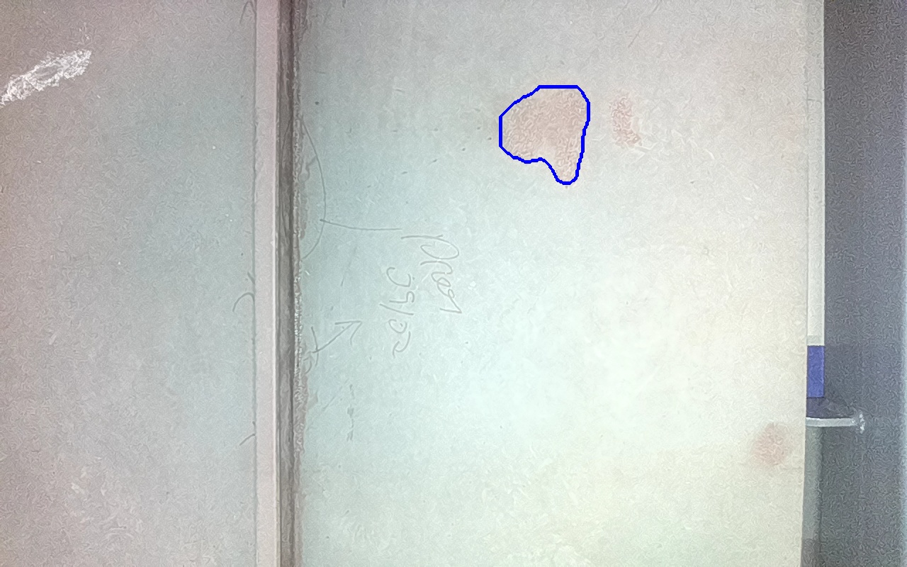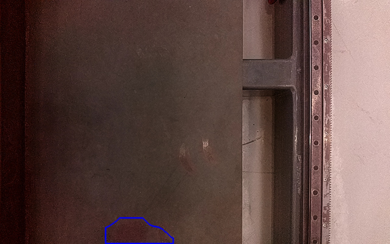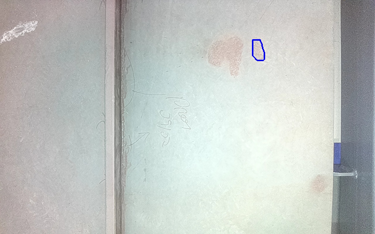 Rayaduras o zonas de metal expuestas con productos de óxido débilmente adherido.
