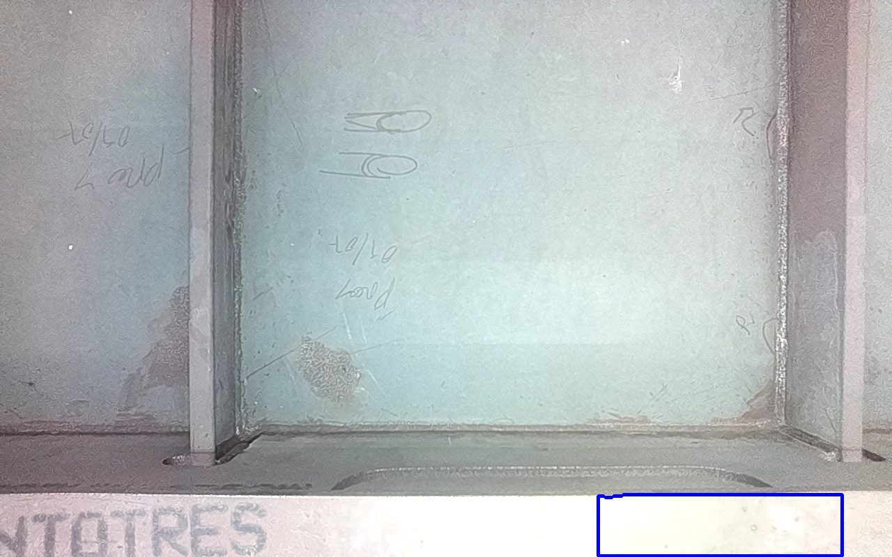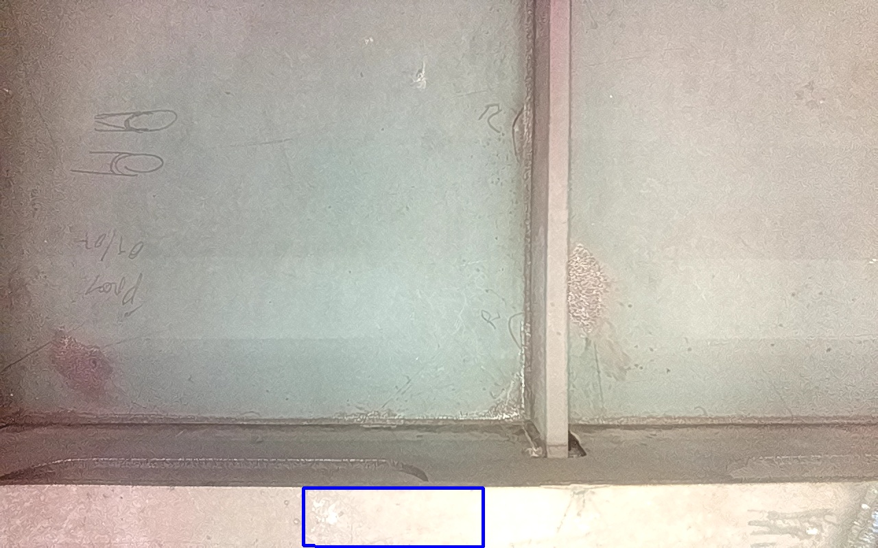 Rayaduras o zonas de metal expuestas con productos de óxido débilmente adherido.