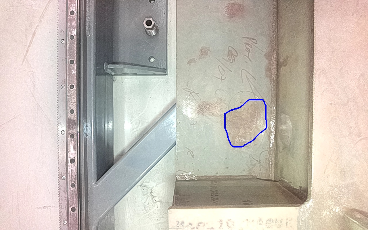 Residuos metálicos adheridos a la superficie, provenientes de operaciones adyacentes de fabricación y montaje. |