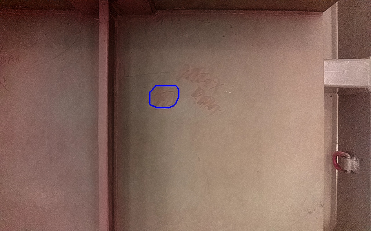 Rayaduras o zonas de metal expuestas con productos de óxido débilmente adherido.