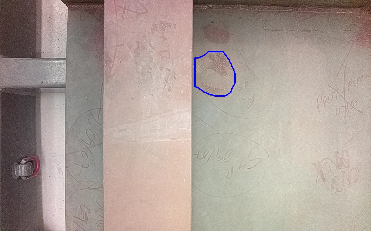 Rayaduras o zonas de metal expuestas con productos de óxido débilmente adherido.