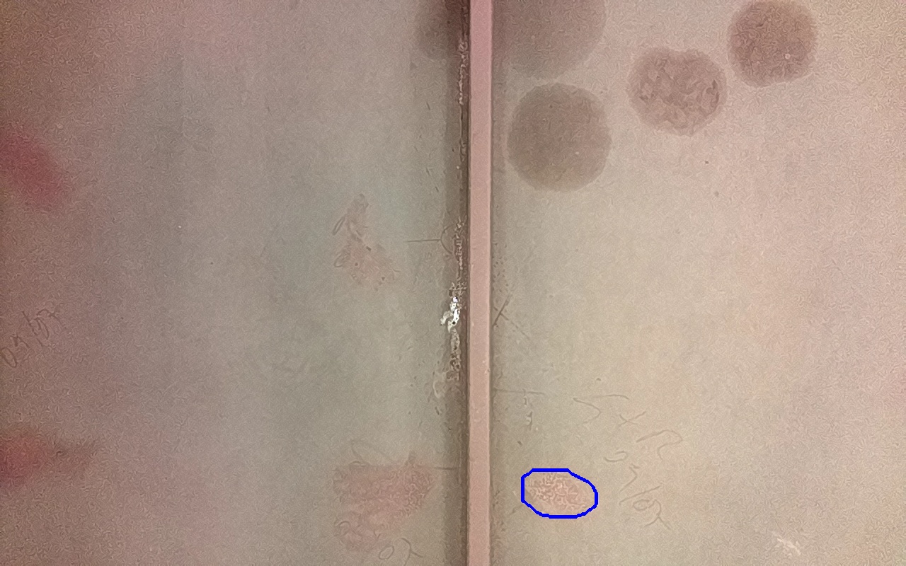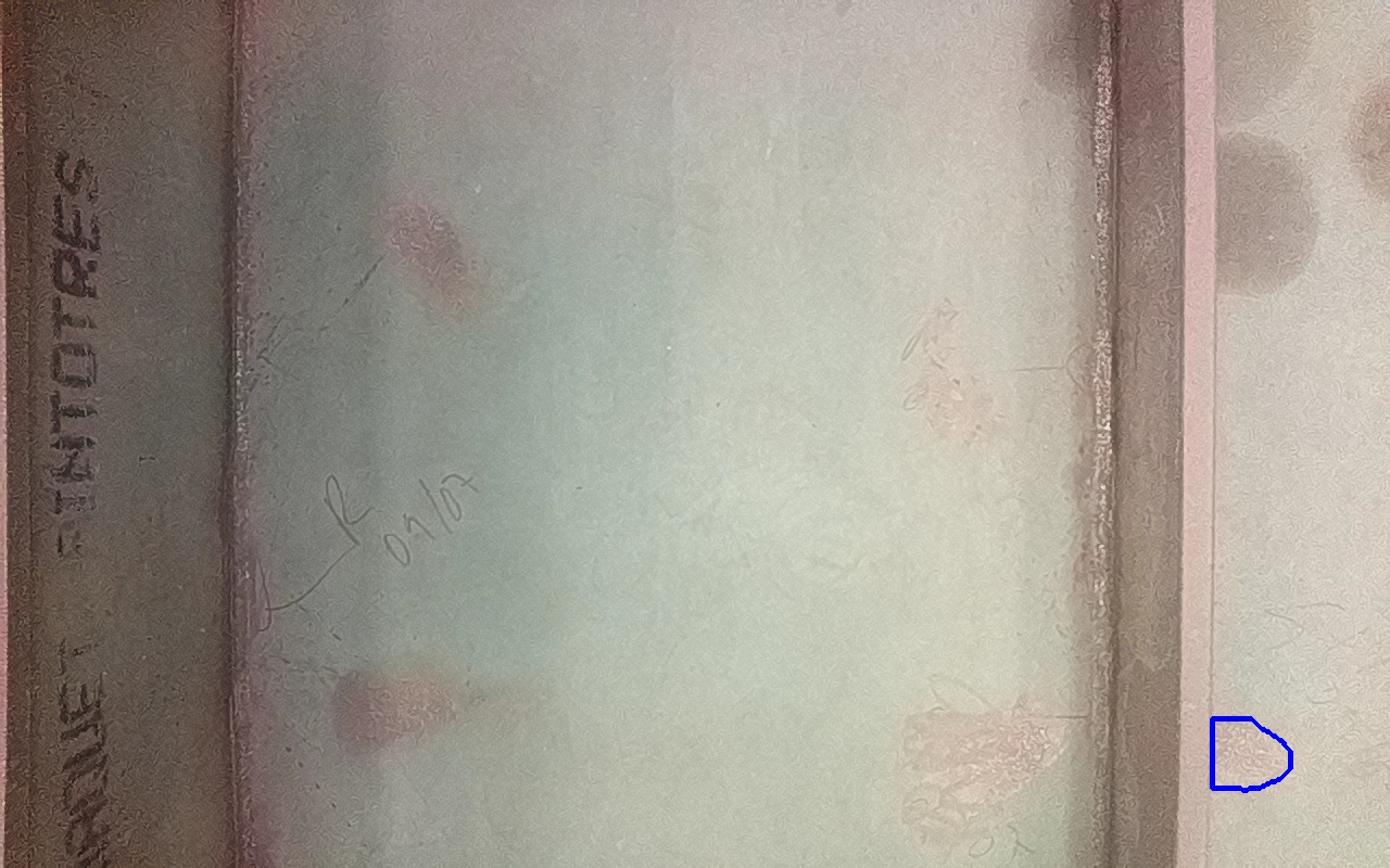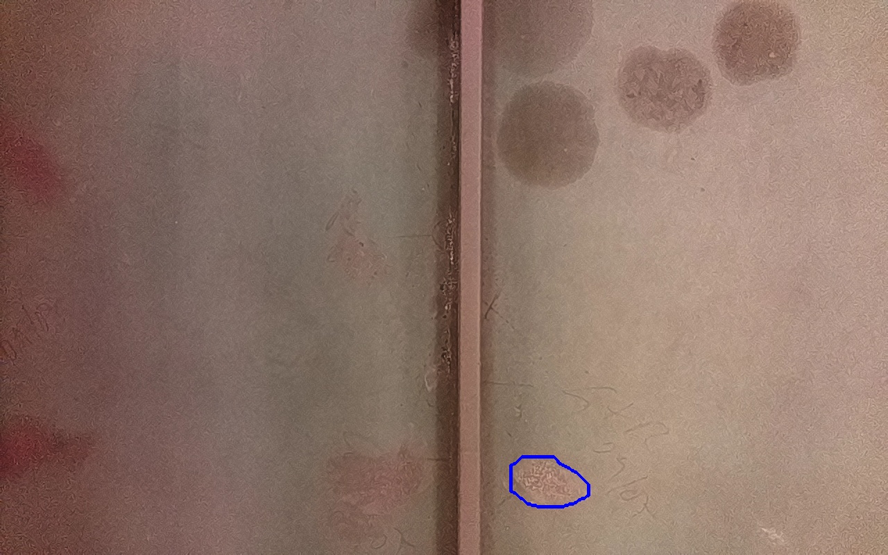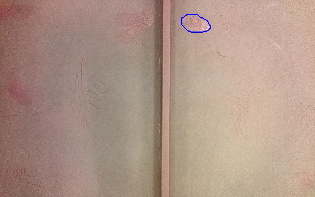 Rayaduras o zonas de metal expuestas con productos de óxido débilmente adherido.