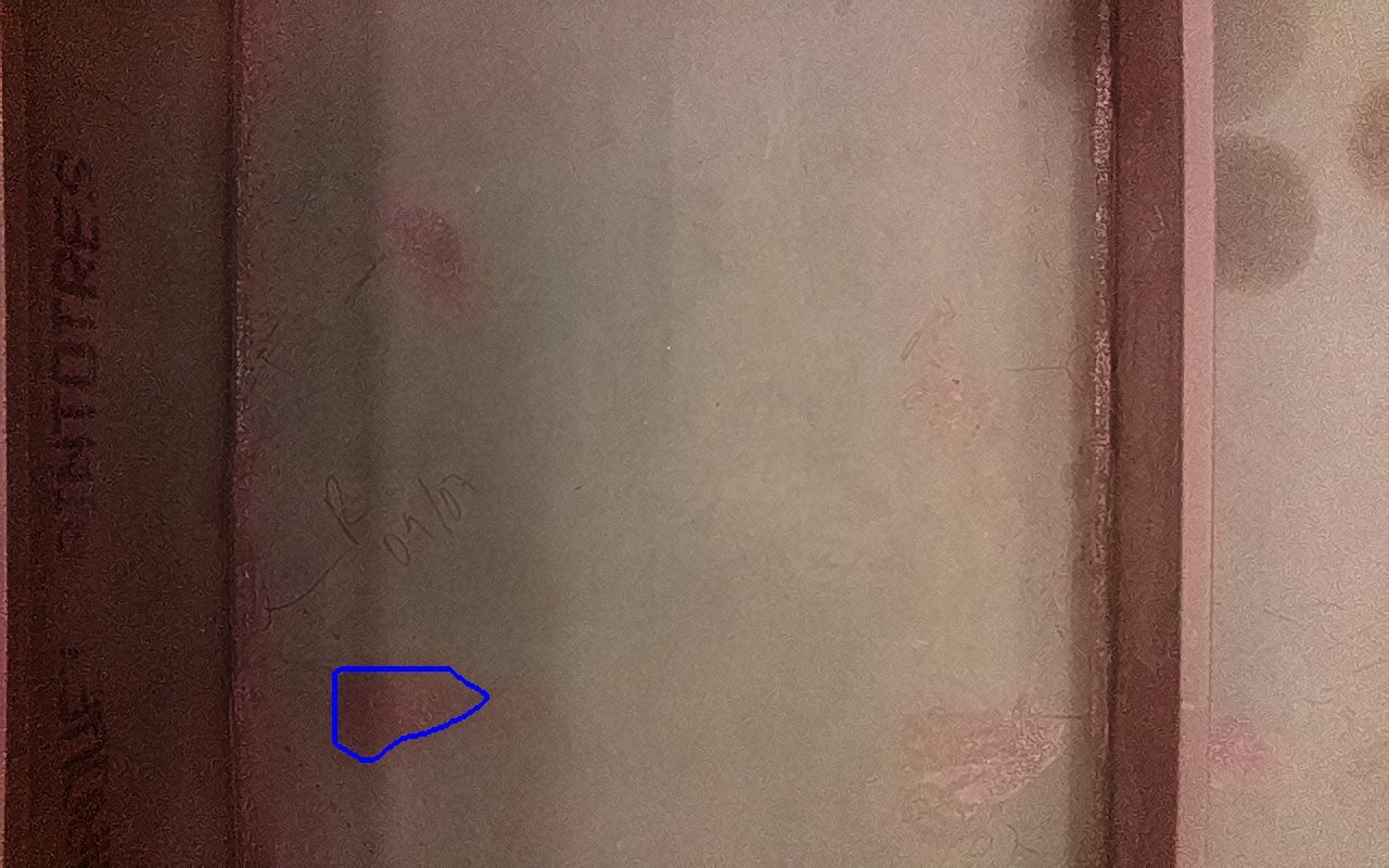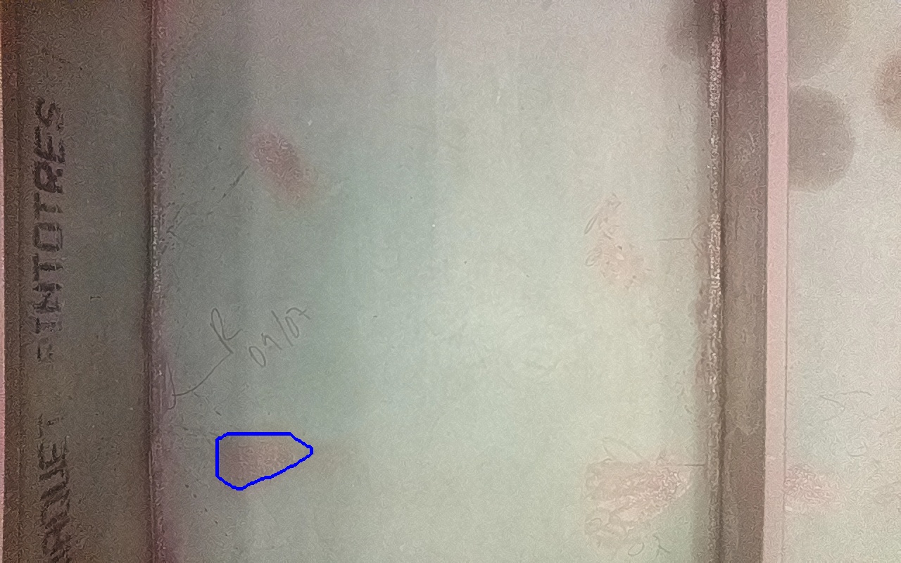 Rayaduras o zonas de metal expuestas con productos de óxido débilmente adherido.