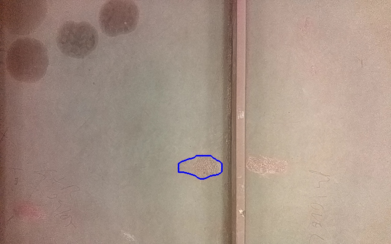 Rayaduras o zonas de metal expuestas con productos de óxido débilmente adherido.