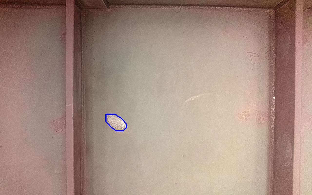 Rayaduras o zonas de metal expuestas con productos de óxido débilmente adherido.