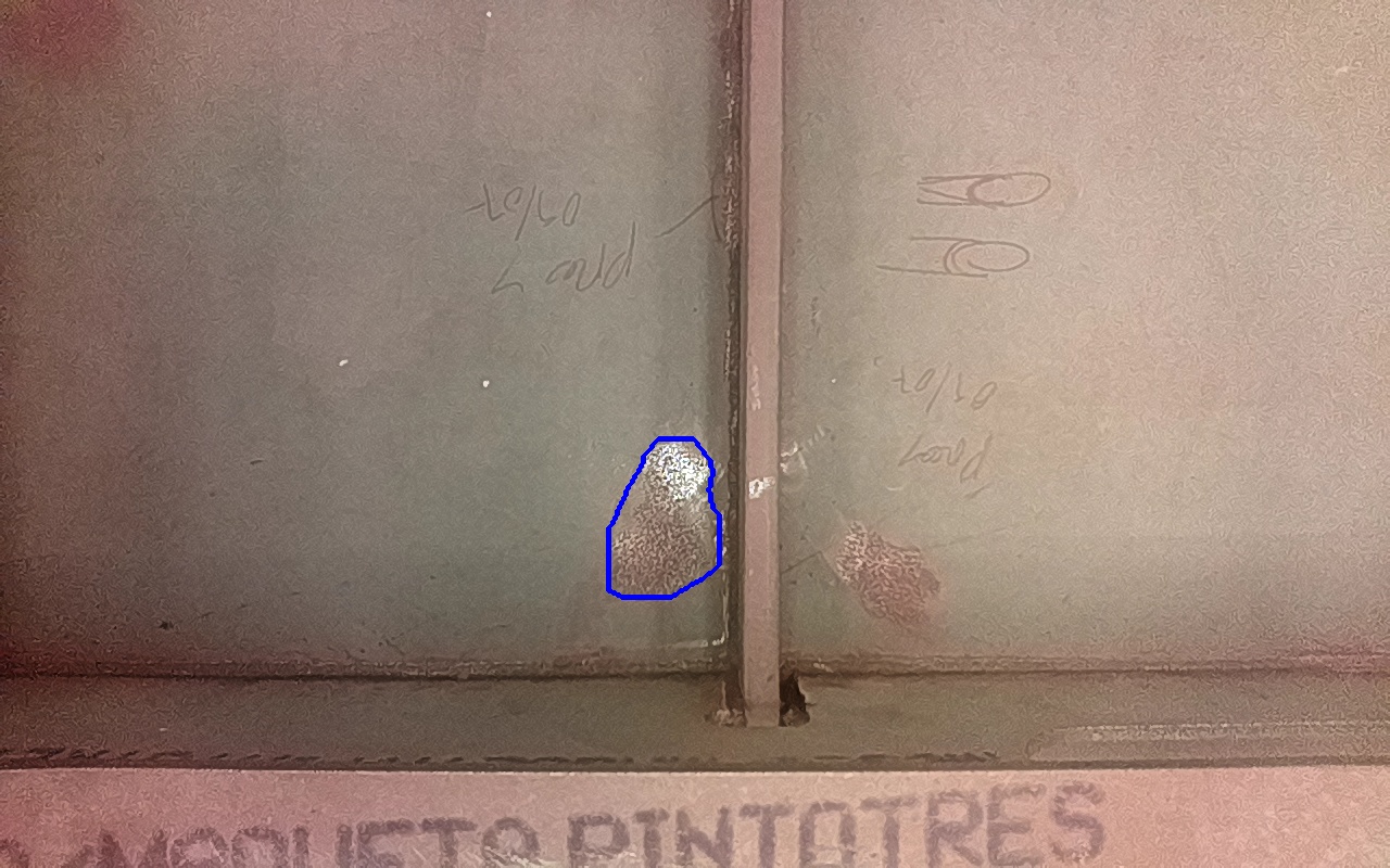 Rayaduras o zonas de metal expuestas con productos de óxido débilmente adherido.