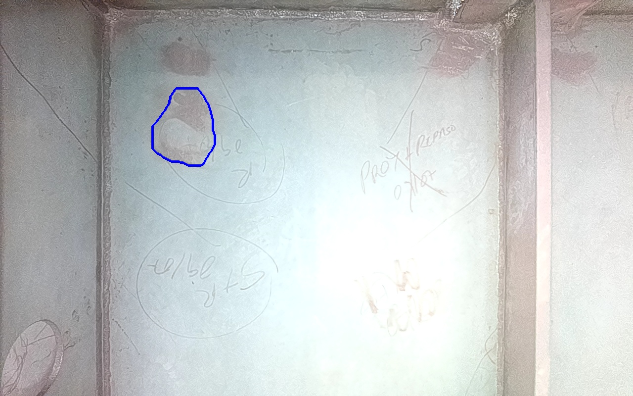 Rayaduras o zonas de metal expuestas con productos de óxido débilmente adherido.