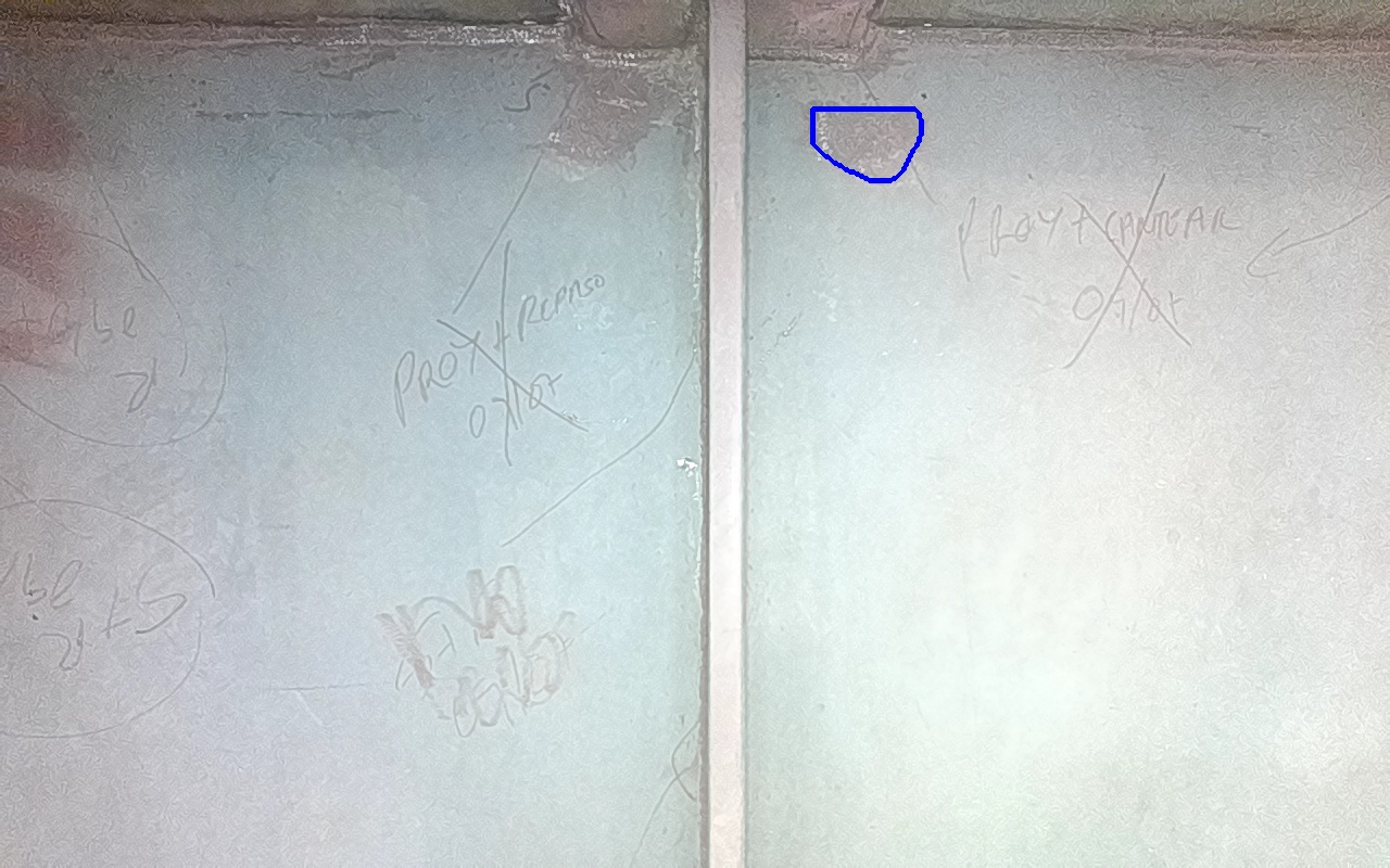 Rayaduras o zonas de metal expuestas con productos de óxido débilmente adherido.