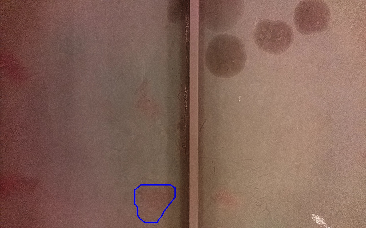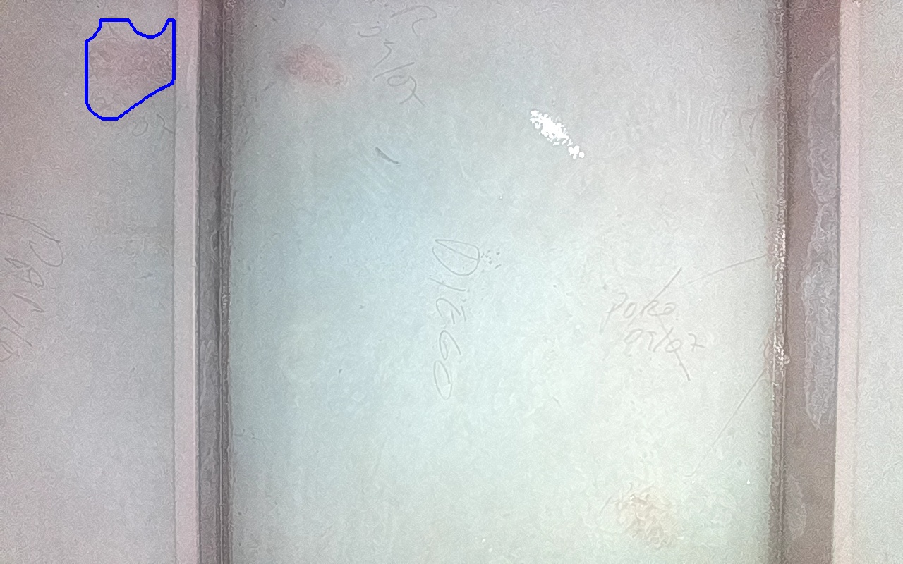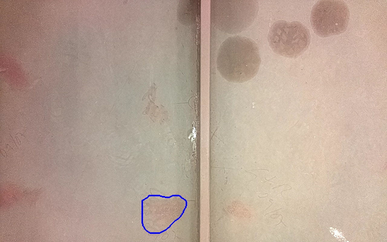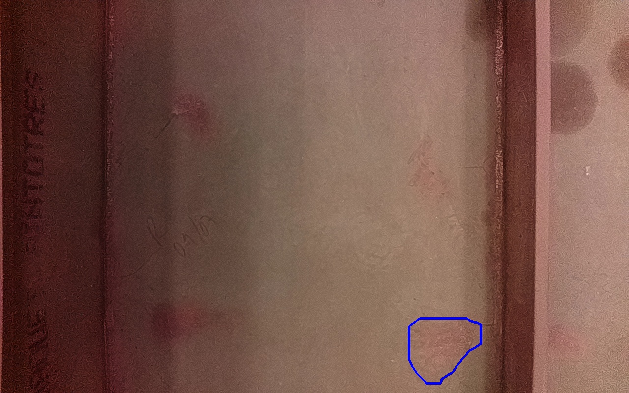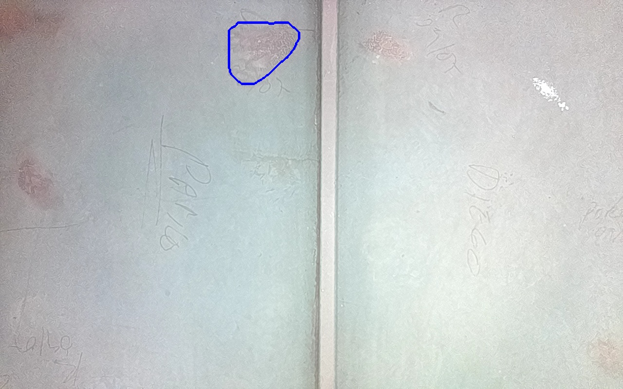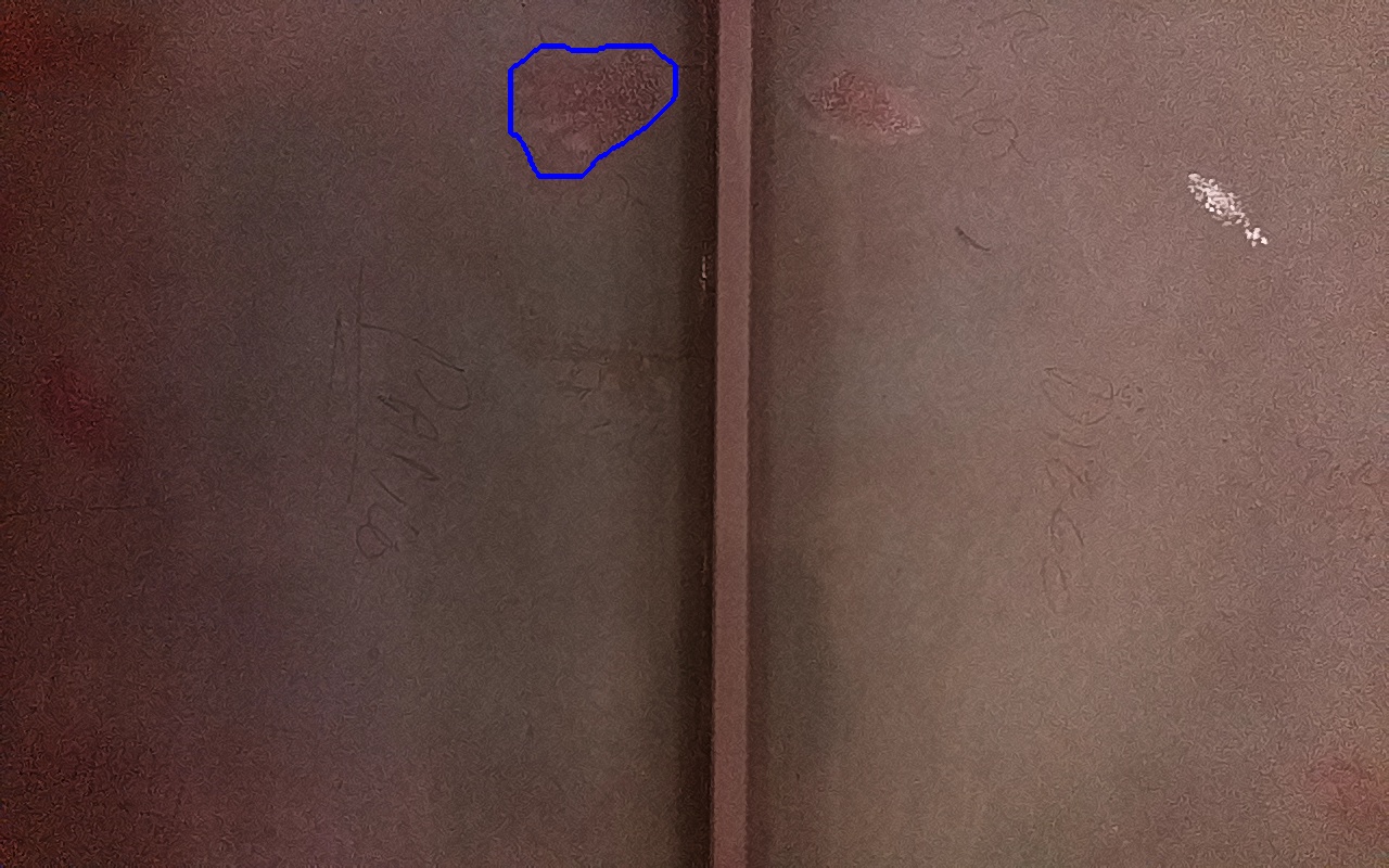 Rayaduras o zonas de metal expuestas con productos de óxido débilmente adherido.