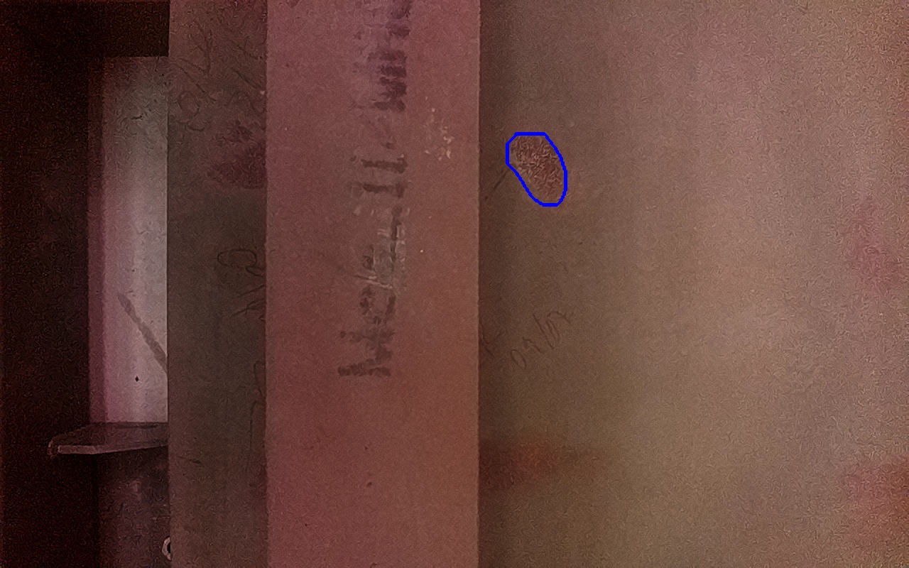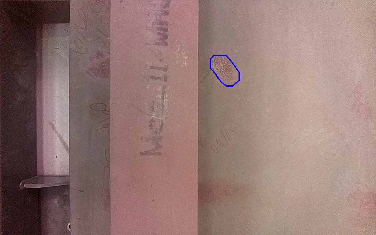 Rayaduras o zonas de metal expuestas con productos de óxido débilmente adherido.