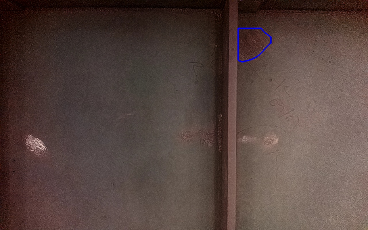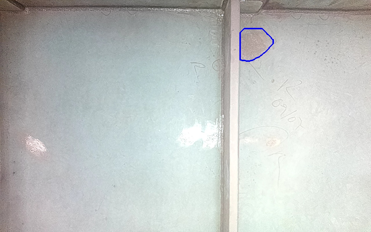 Rayaduras o zonas de metal expuestas con productos de óxido débilmente adherido.