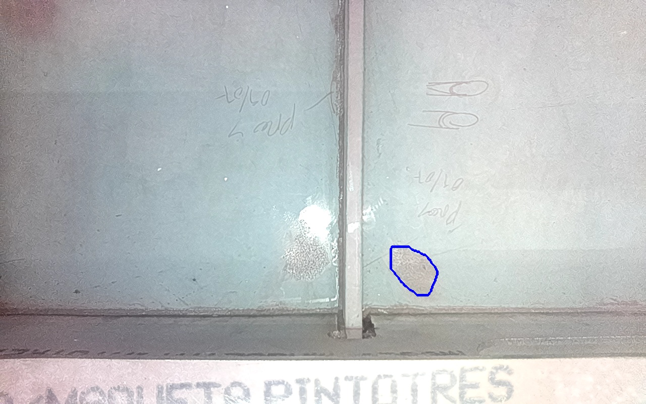 Rayaduras o zonas de metal expuestas con productos de óxido débilmente adherido.