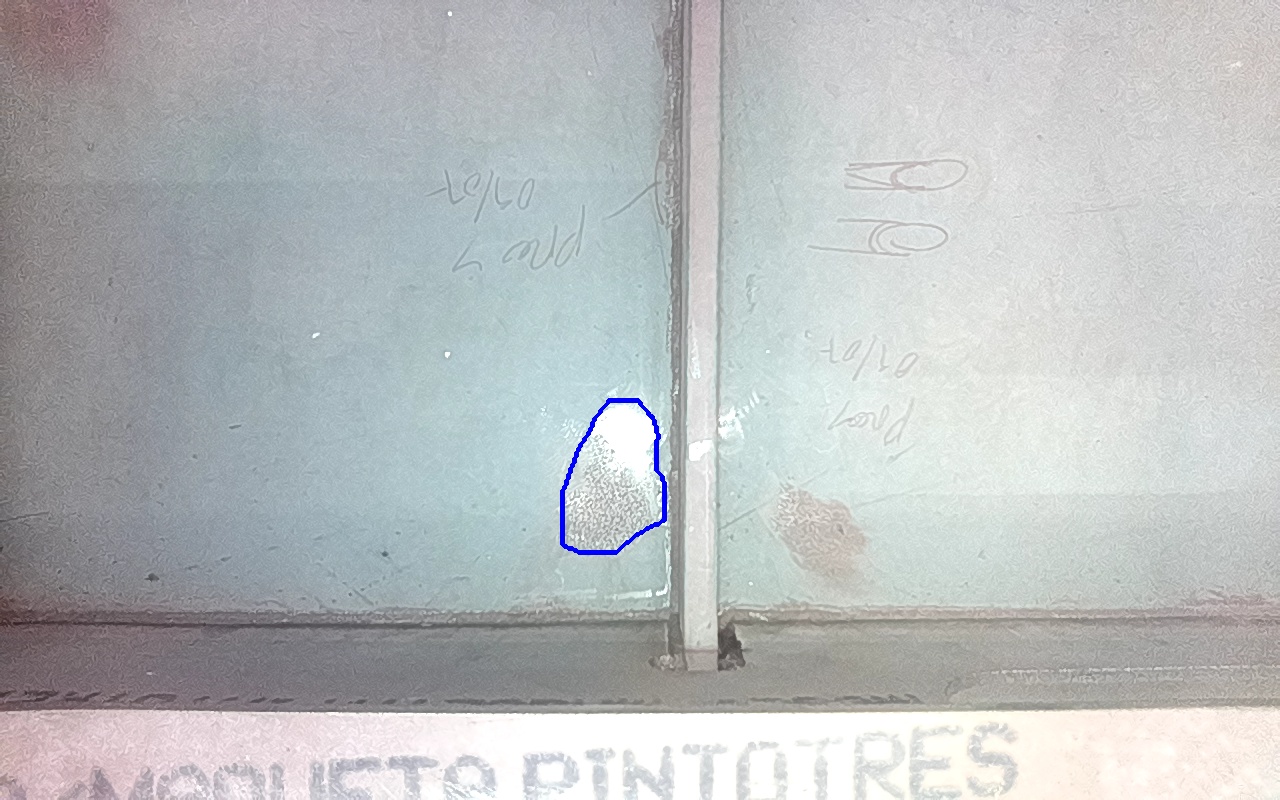 Rayaduras o zonas de metal expuestas con productos de óxido débilmente adherido.