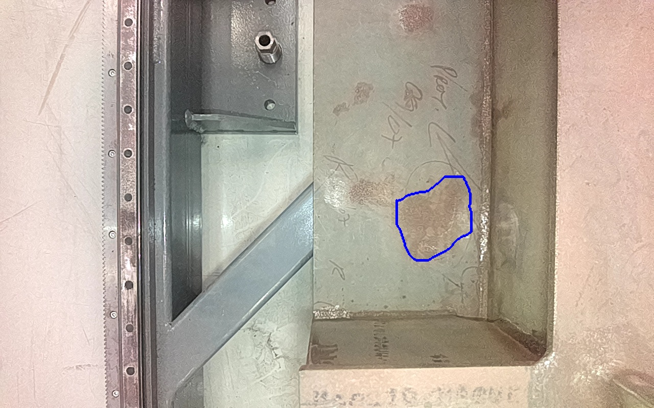 Rayaduras o zonas de metal expuestas con productos de óxido débilmente adherido. |