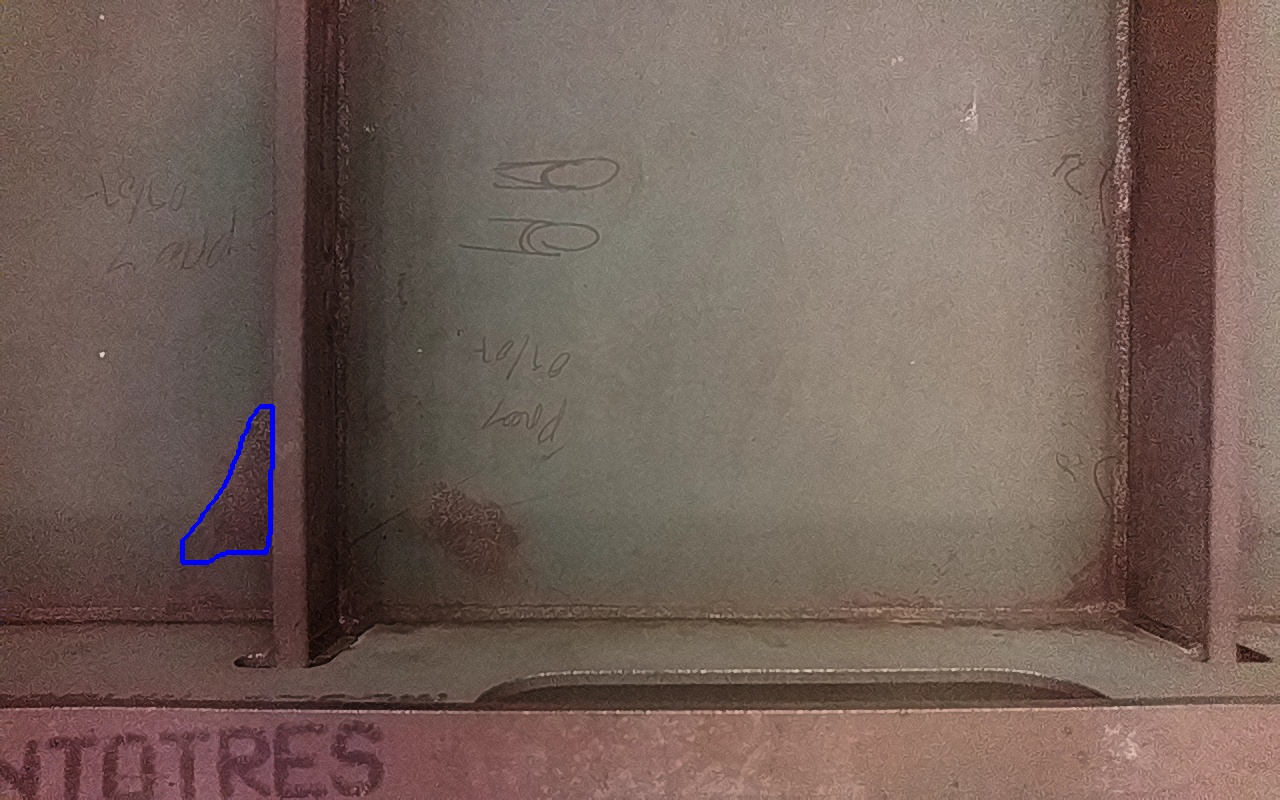 Rayaduras o zonas de metal expuestas con productos de óxido débilmente adherido. |