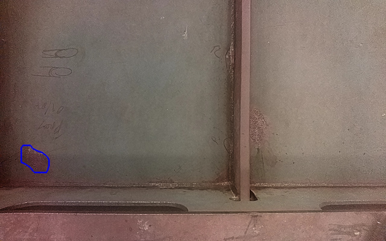 Rayaduras o zonas de metal expuestas con productos de óxido débilmente adherido. |