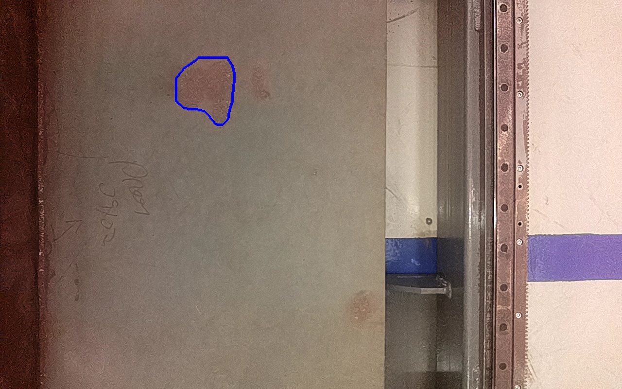 Rayaduras o zonas de metal expuestas con productos de óxido débilmente adherido. |