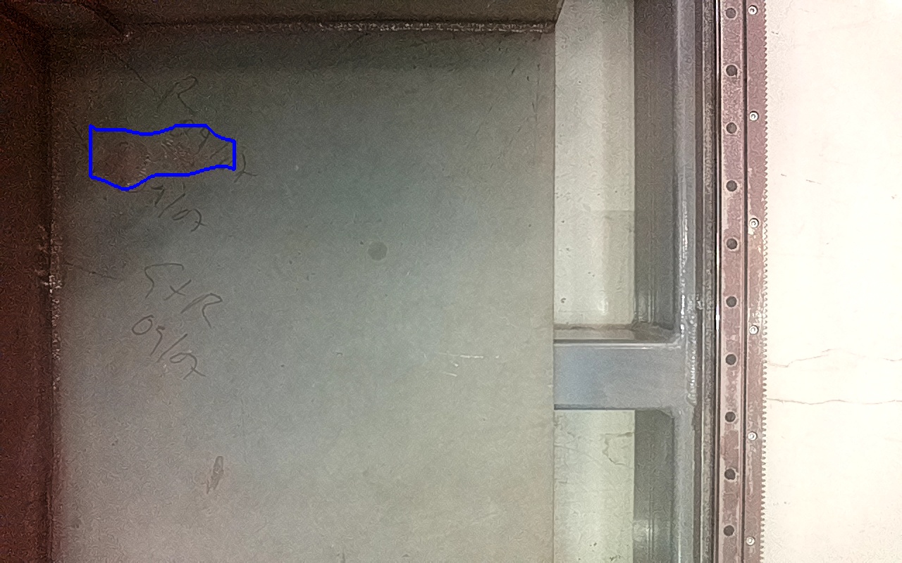 Rayaduras o zonas de metal expuestas con productos de óxido débilmente adherido. |