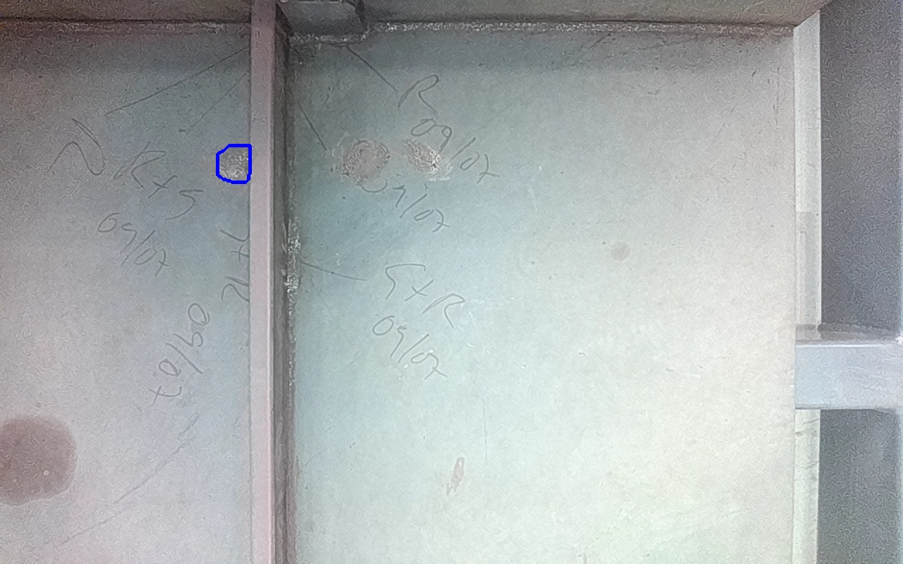 Rayaduras o zonas de metal expuestas con productos de óxido débilmente adherido. |
