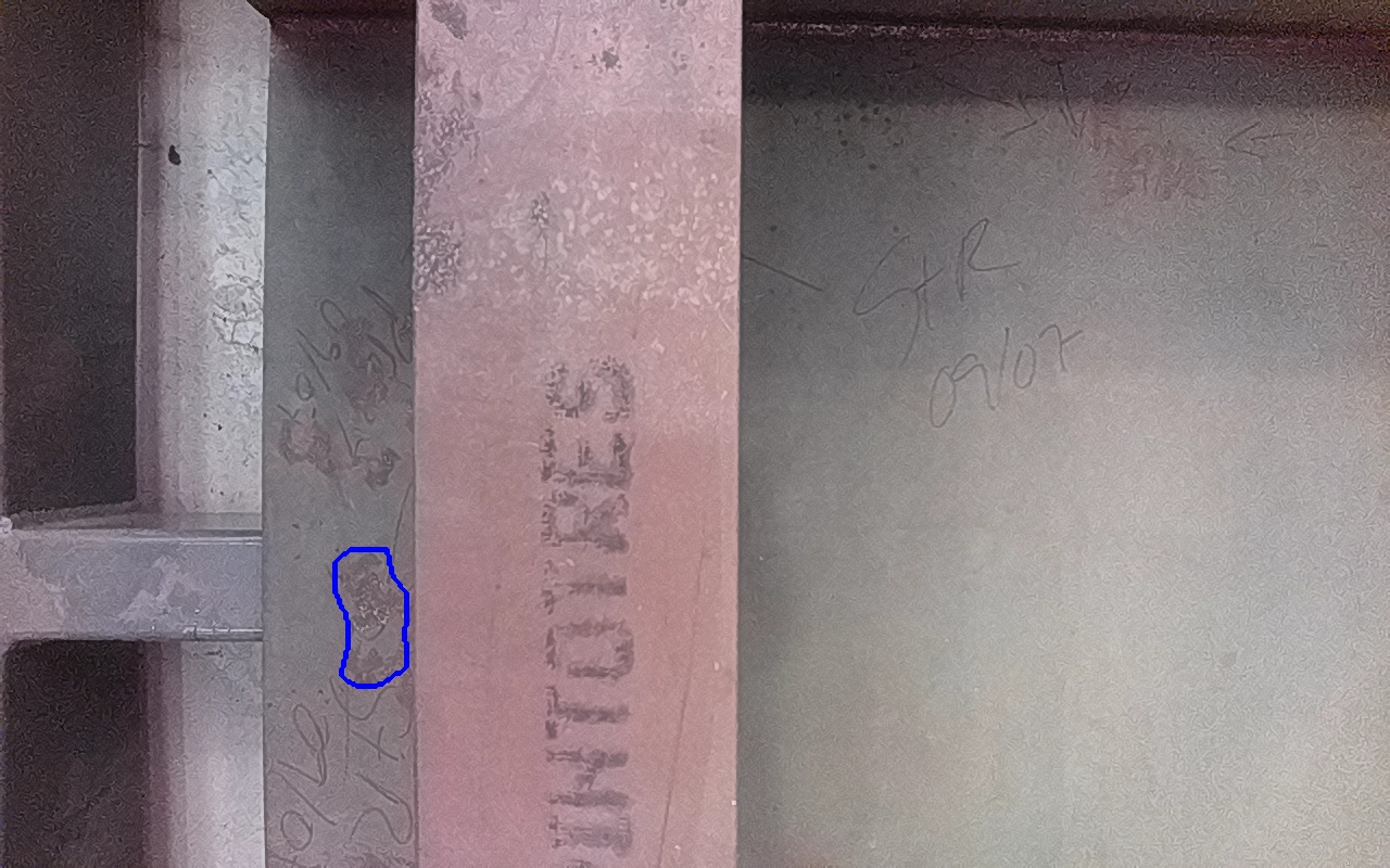 Rayaduras o zonas de metal expuestas con productos de óxido débilmente adherido. |