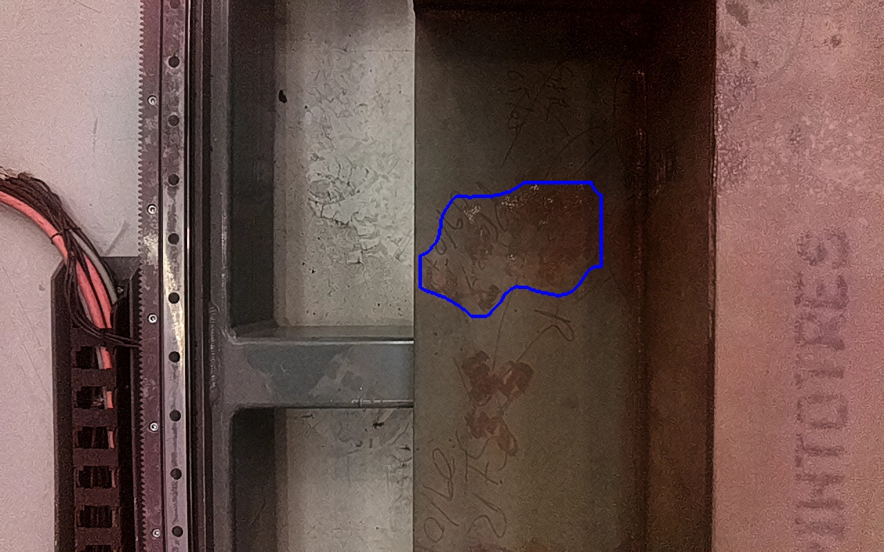 Rayaduras o zonas de metal expuestas con productos de óxido débilmente adherido. |