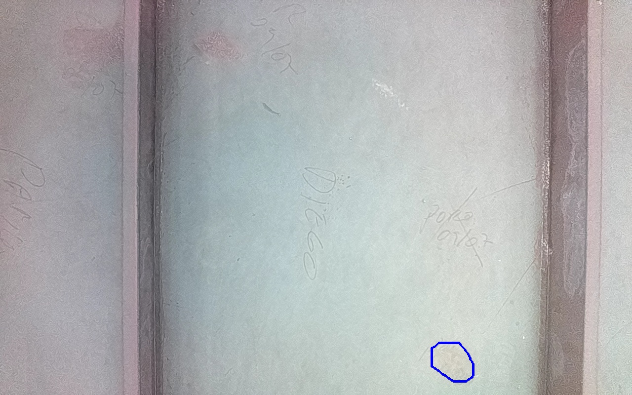 Rayaduras o zonas de metal expuestas con productos de óxido débilmente adherido. |