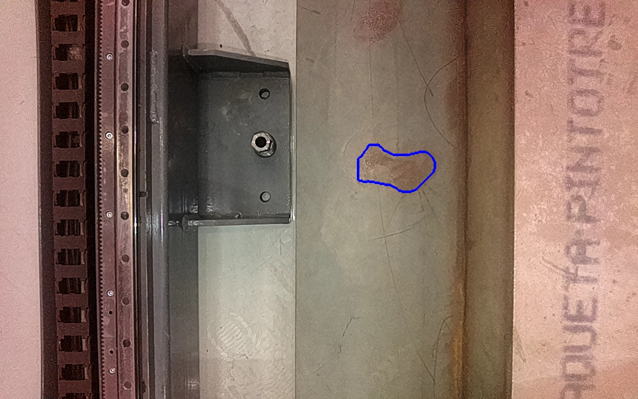 Rayaduras o zonas de metal expuestas con productos de óxido débilmente adherido. |