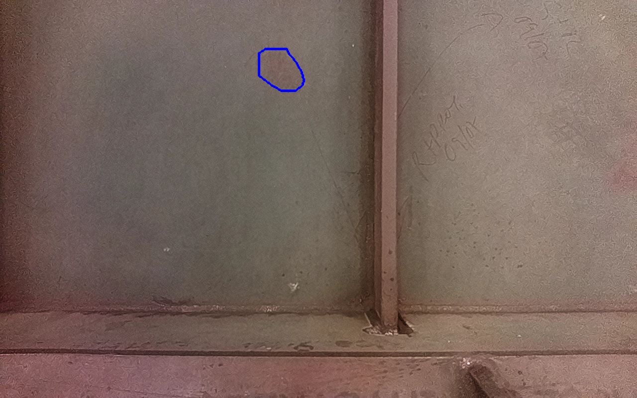 Rayaduras o zonas de metal expuestas con productos de óxido débilmente adherido. |